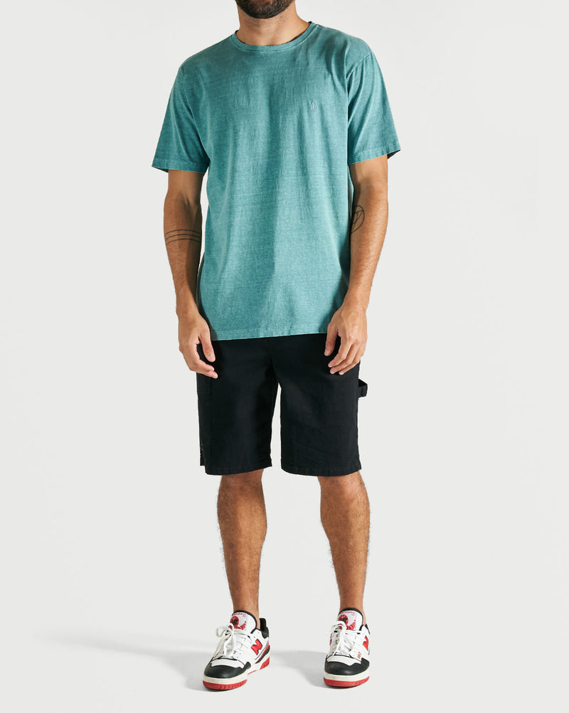 Bermuda Jeans Volcom Rainer. Possui bolso faca, cós em elástico e bordado Volcom Stone na perna.