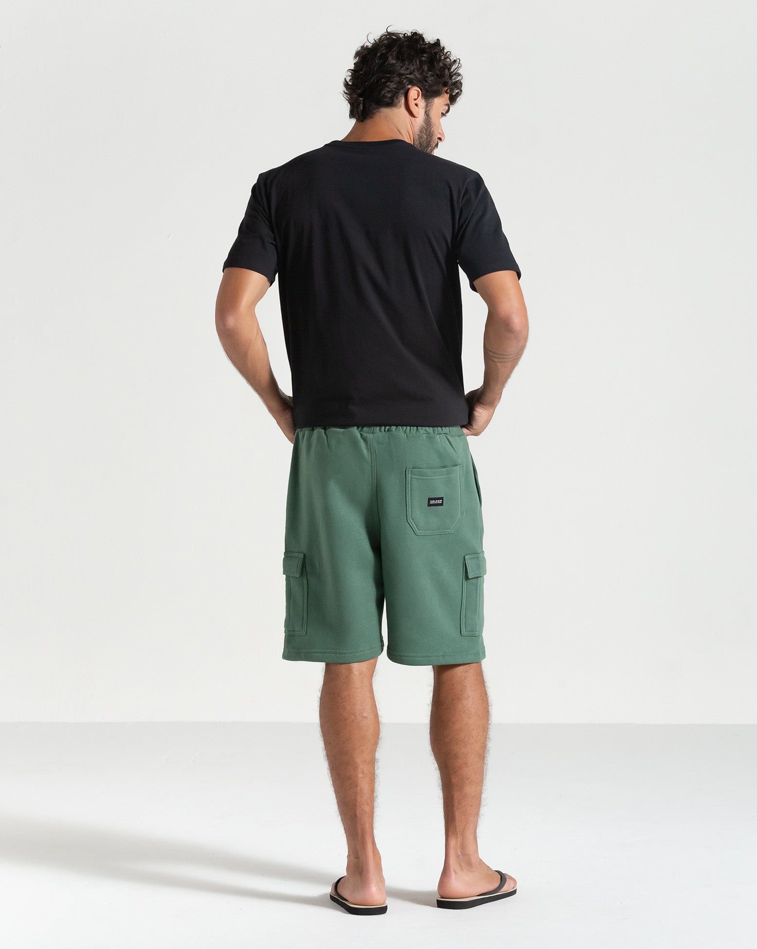 Bermuda Moletom Volcom Comf Cargo. Possui modelagem regular, bolso faca e bolso traseiro, bolso cargo, ajuste na cintura, bordado Volcom Stone na perna e etiqueta Volcom no bolso traseiro.