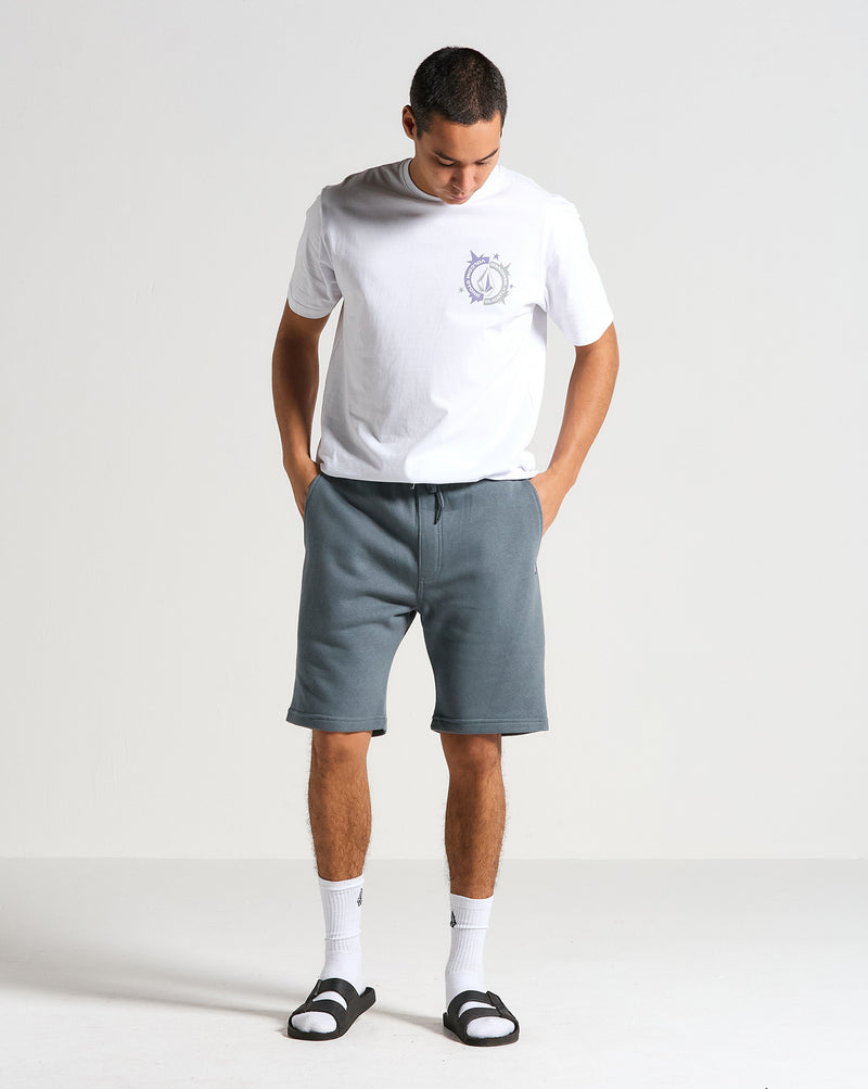 Bermuda Moletom Volcom Single Stone. Possui modelagem regular, estampa Volcom Stone em silk na perna, bolso faca lateral, ajuste em cordão, bordado Volcom Stone na perna e eriqueta Volcom no bolso traseiro.
