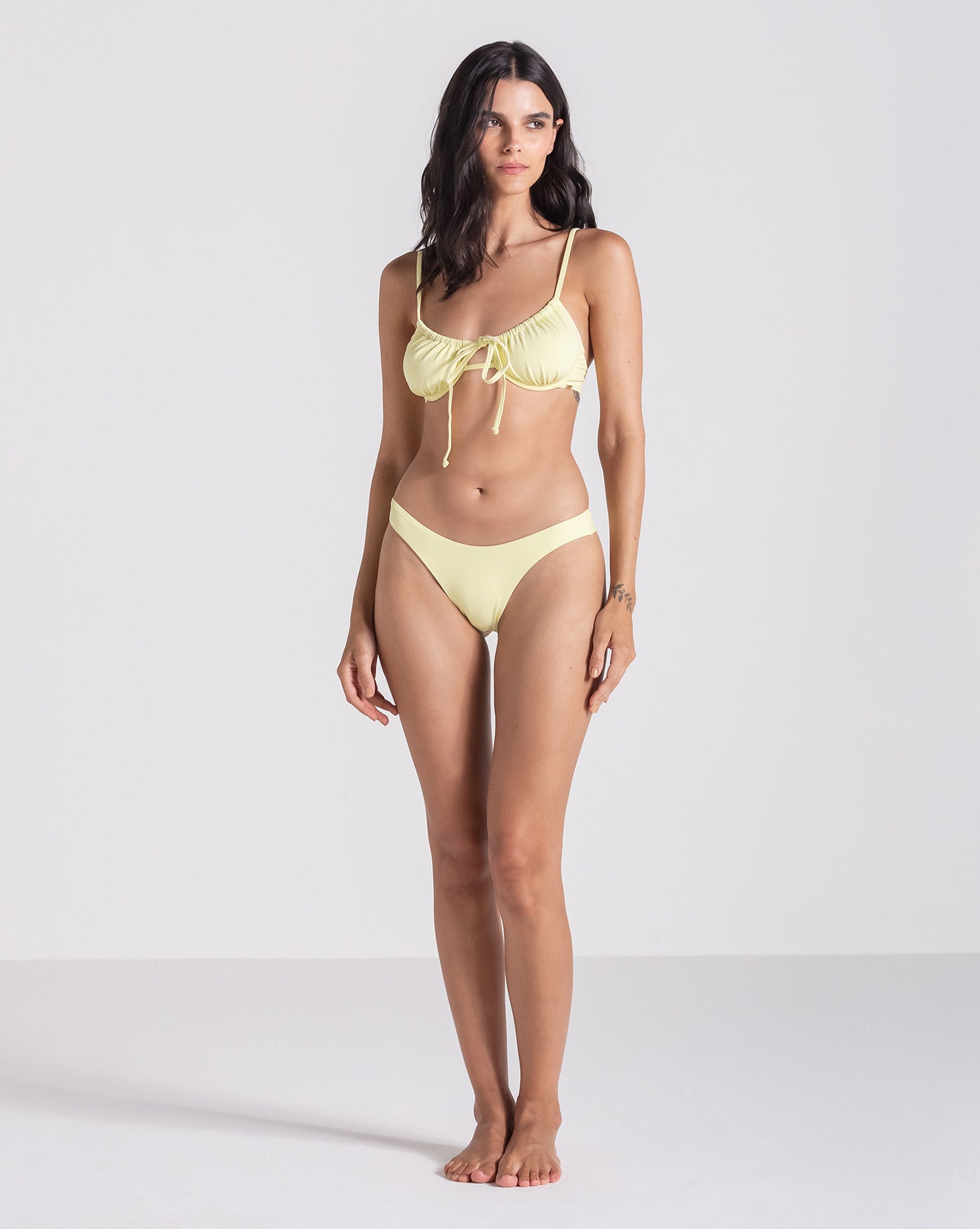 Biquíni Volcom Trip Out Uwire Amarelo. Modelagem 1/2 taça, ajuste nas alças, detalhe na amarração, plaquinha de metal Volcom e proteção UV 50+.