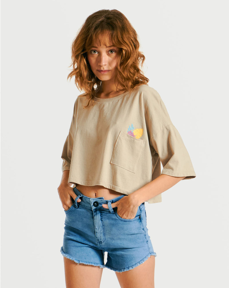 Blusa Volcom Pocket Dial Preta. Confeccionada em tecido meia malha PT de algodão. Possui modelagem relaxed cropped, bolso frontal, estampa em silk frontal e nas costas e lavagem efeito estonado. Disponível nas cores preta e areia.