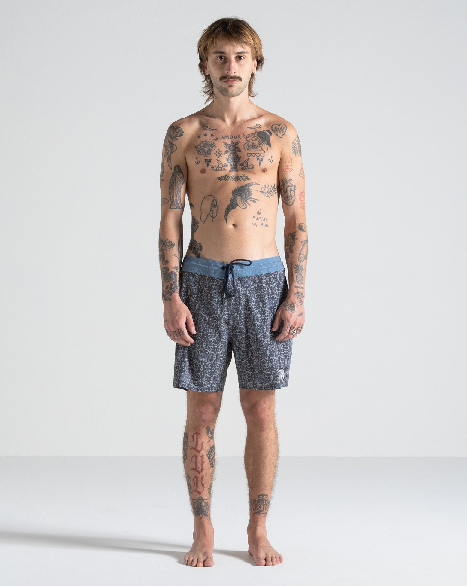 Boardshort Psych Stoney Moonbean. Possui 17” de comprimento, bolso traseiro com lapela, tecnologia Stoney Cinch Fly, patch frontal, cós anatômico, etiqueta Volcom aplicada na lapela do bolso.