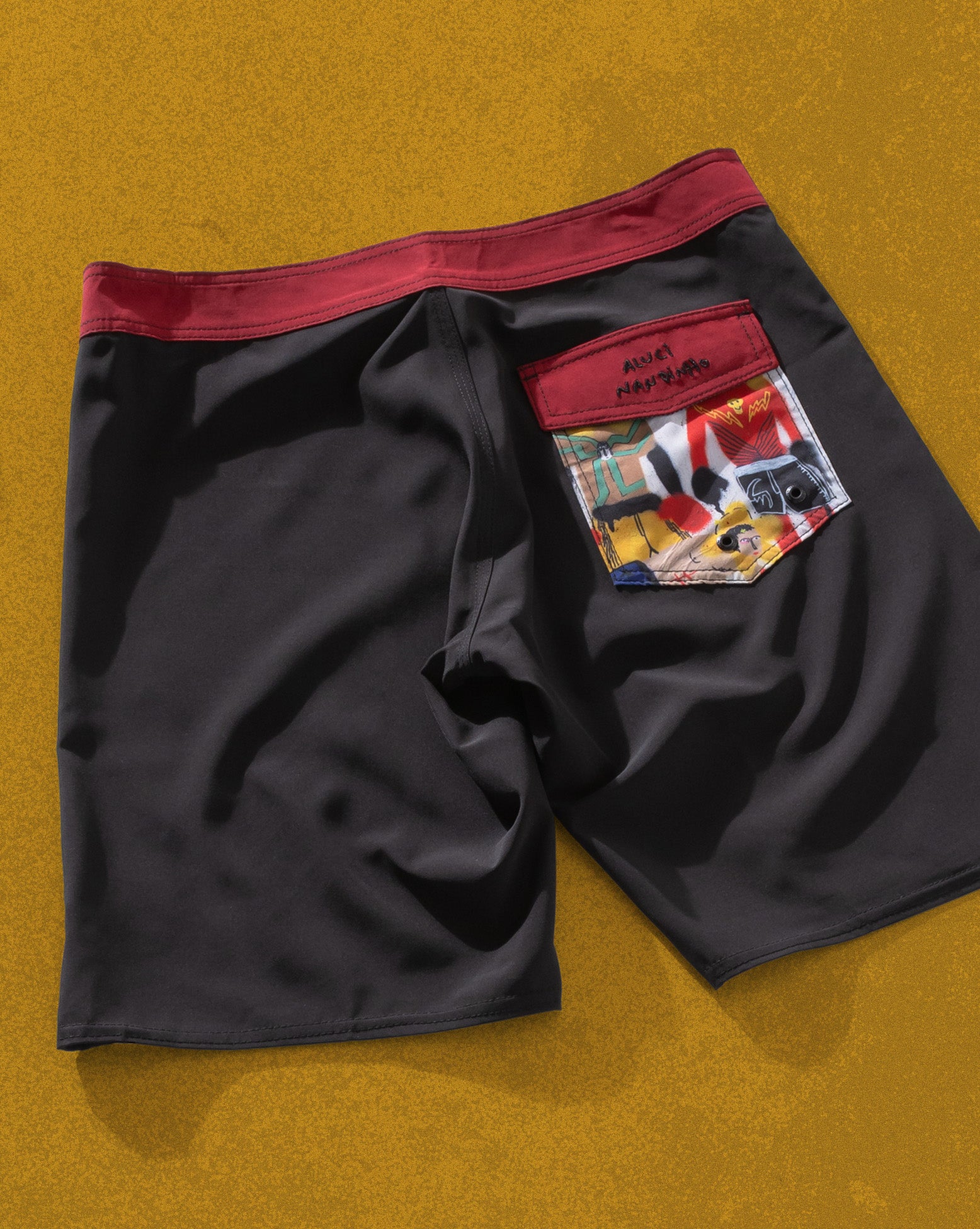 Possui 19” de comprimento, bolso traseiro com lapela e fechamento em velcro, assinatura Alucinandinho bordada no bolso, tecido leve e de secagem rápida, patch Volcom Stone lateral e cós anatômico.
