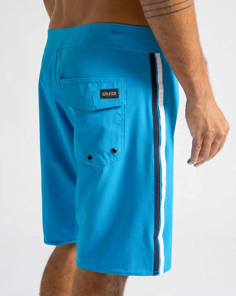 Boardshort Volcom Lawton. Possui 19 polegadas de comprimento, bolso traseiro com lapela e etiqueta Volcom e patch Volcom Stone lateral. Confeccionado em tecido poliéster e elastano com secagem rápida e 4-way stretch muito confortável.