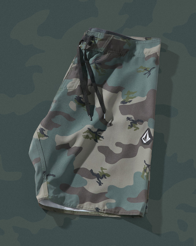 Boardshort Volcom Lido Camo. Possui 20 polegadas de comprimento, bolso lateral com lapela e patch Volcom Stone lateral. Confeccionado em 4-way stretch, para máxima mobilidade, em tecido leve e de secagem rápida.