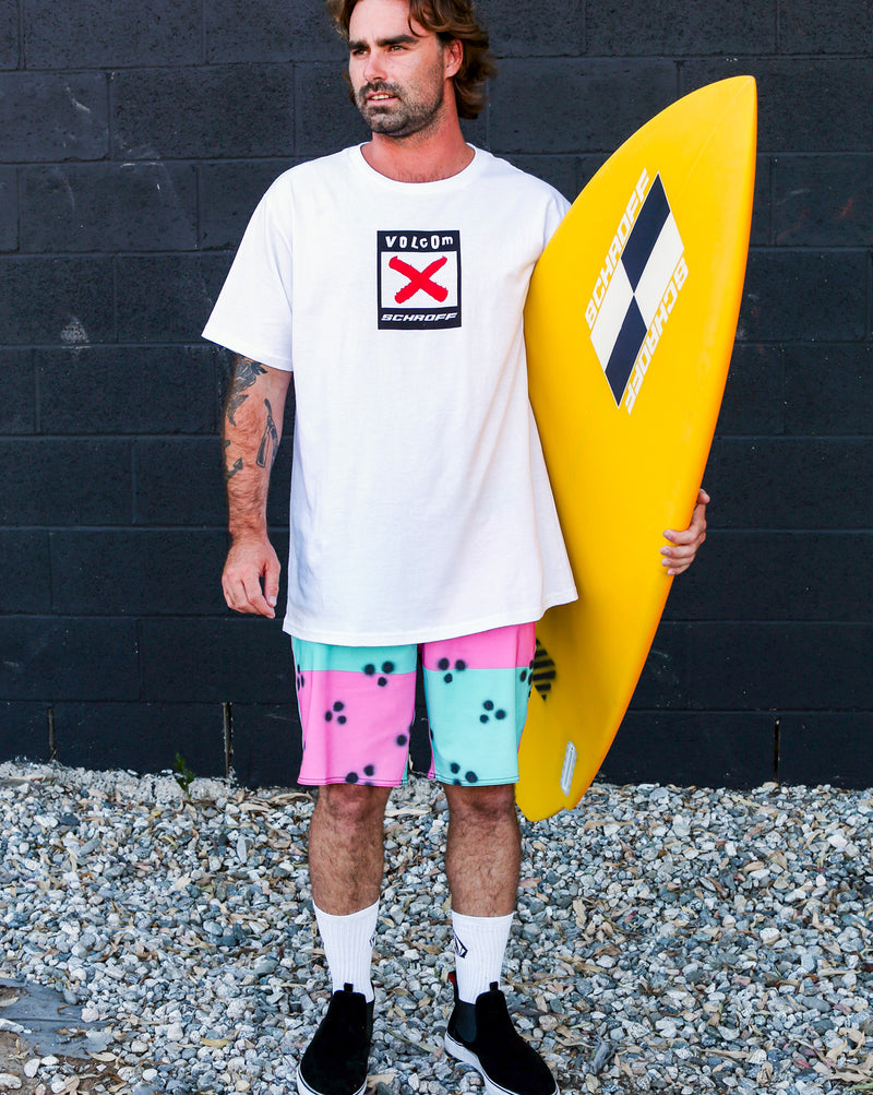Boardshort Volcom Schroff. Coleção do lendário surfboard shaper e Volcom Featured Artist, Peter Schroff. Possui 18 polegadas de comprimento, bolso lateral embutido com fechamento em zíper e patch Volcom Stone lateral. Confeccionado em 4-way stretch, para máxima mobilidade, em tecido leve e de secagem rápida.