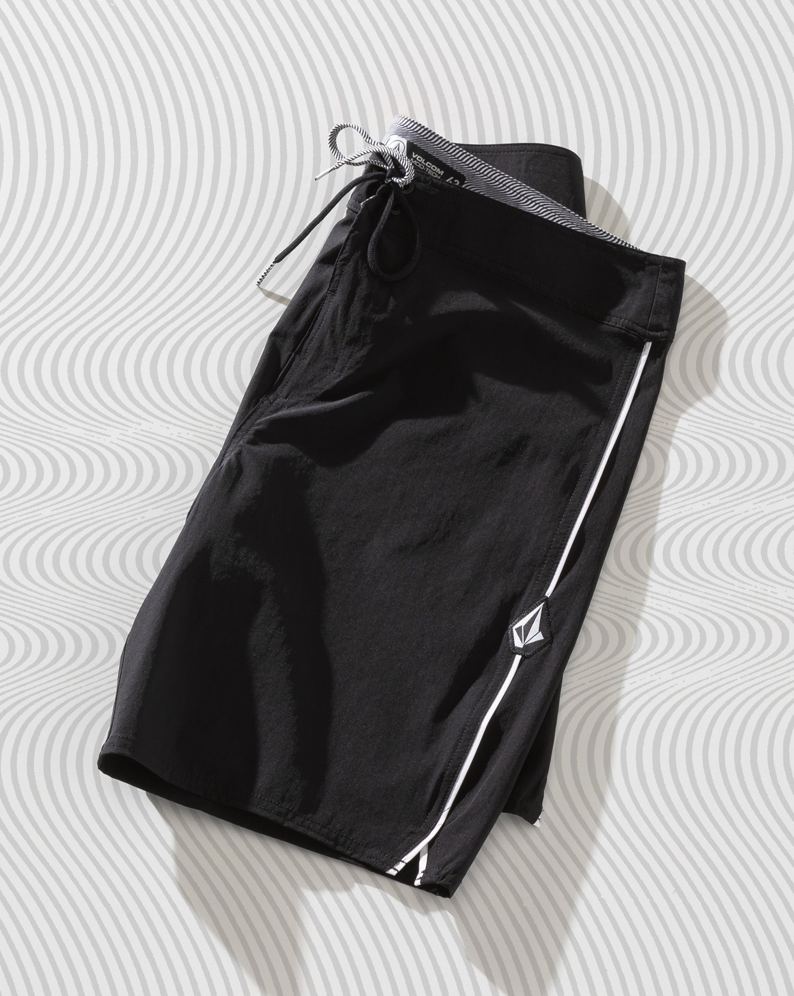 Boardshort Volcom Sponge Preto. Possui 19” de comprimento, bolso traseiro com lapela e etiqueta Volcom, tecnologia Stoney Cinch Fly, patch Volcom Stone lateral, cós anatômico e viés contrastante lateral.