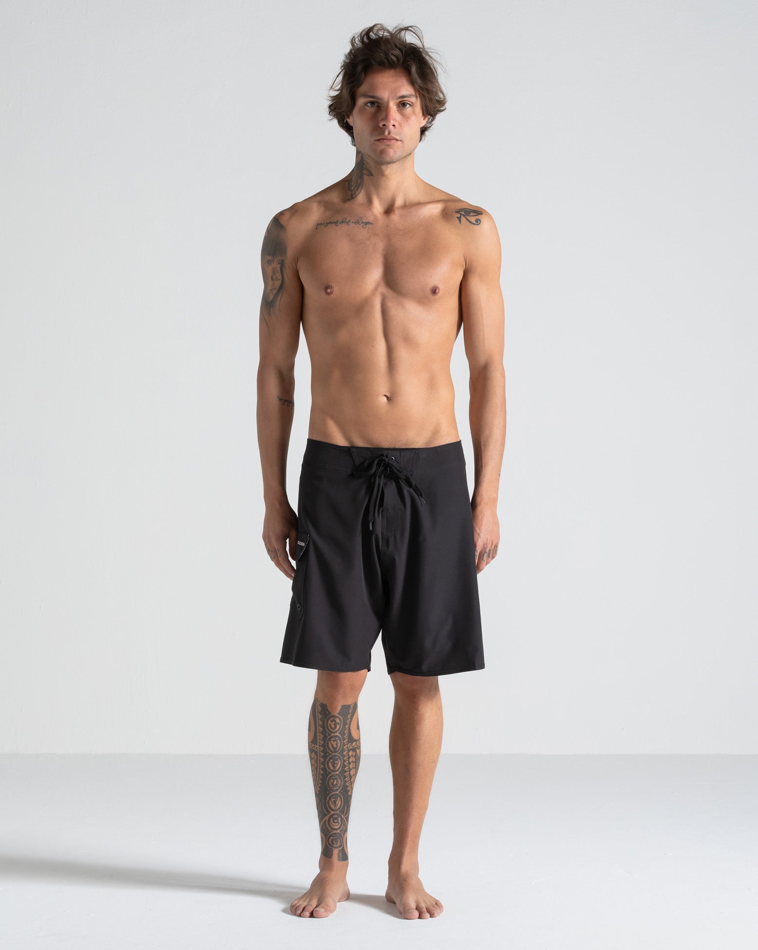 Boardshort Volcom Lido Solid Preto. Possui 20” de comprimento, bolso lateral com lapela, tecido leve e de secagem rápida, patch Volcom Stone lateral, cós anatômico e assinatura Volcom em silk na lapela do bolso.