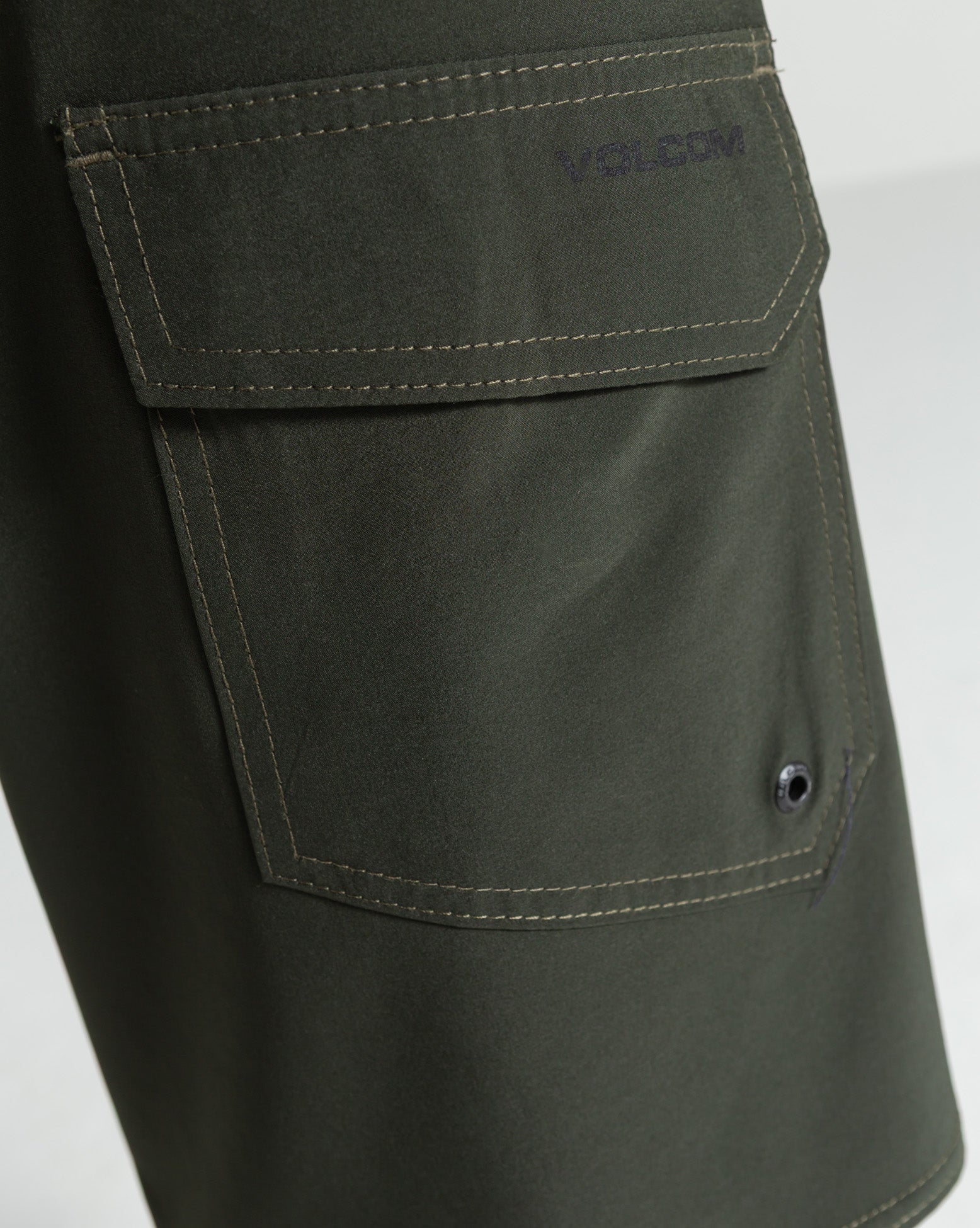 Boardshort Volcom Lido Solid Verde. Possui 20” de comprimento, bolso lateral com lapela, tecido leve e de secagem rápida, patch Volcom Stone lateral, cós anatômico e assinatura Volcom em silk na lapela do bolso.