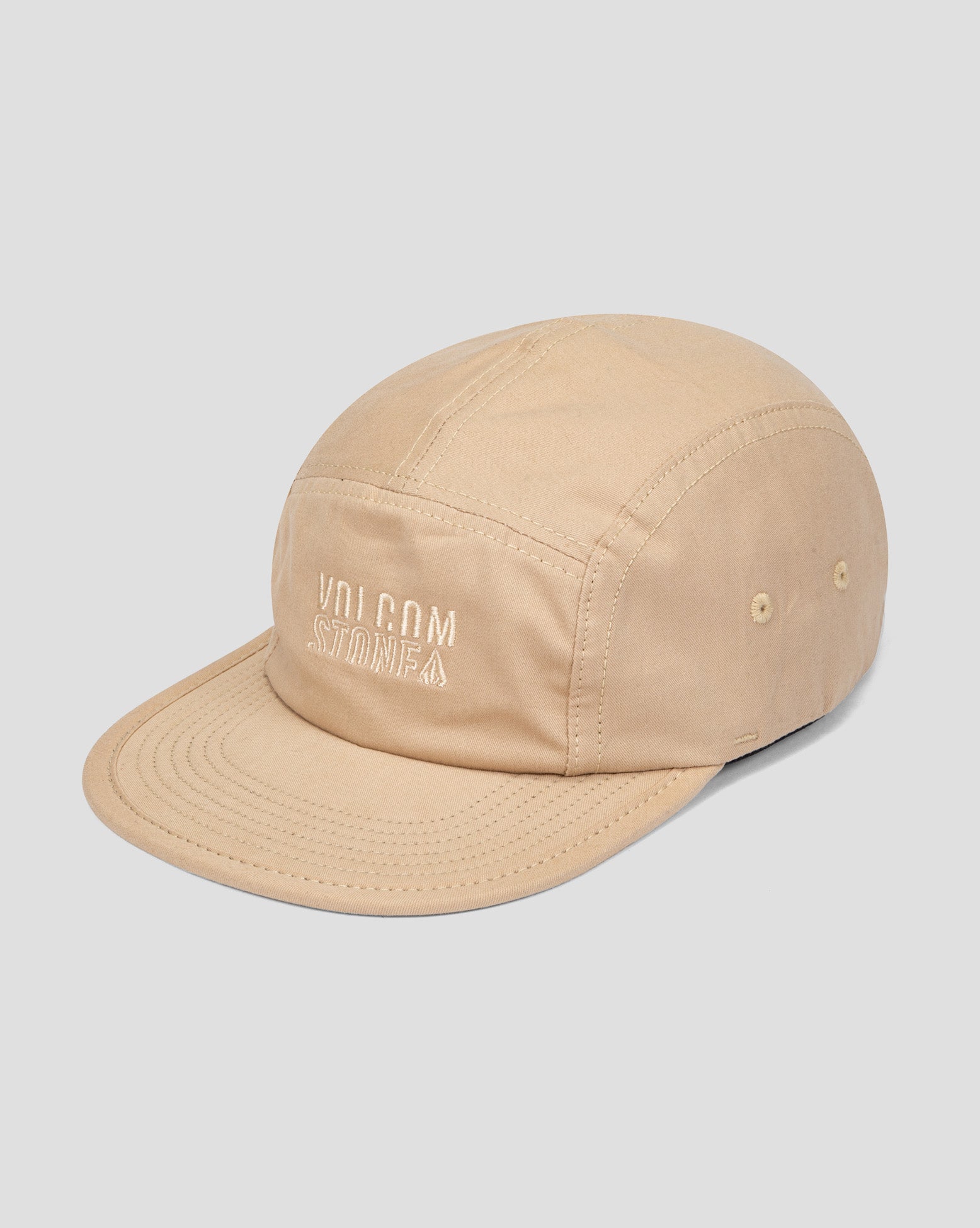 Boné Volcom Clue Areia. Modelo 5 panel desestruturado, bordado sobretom frontal e ajuste traseiro com regulador.