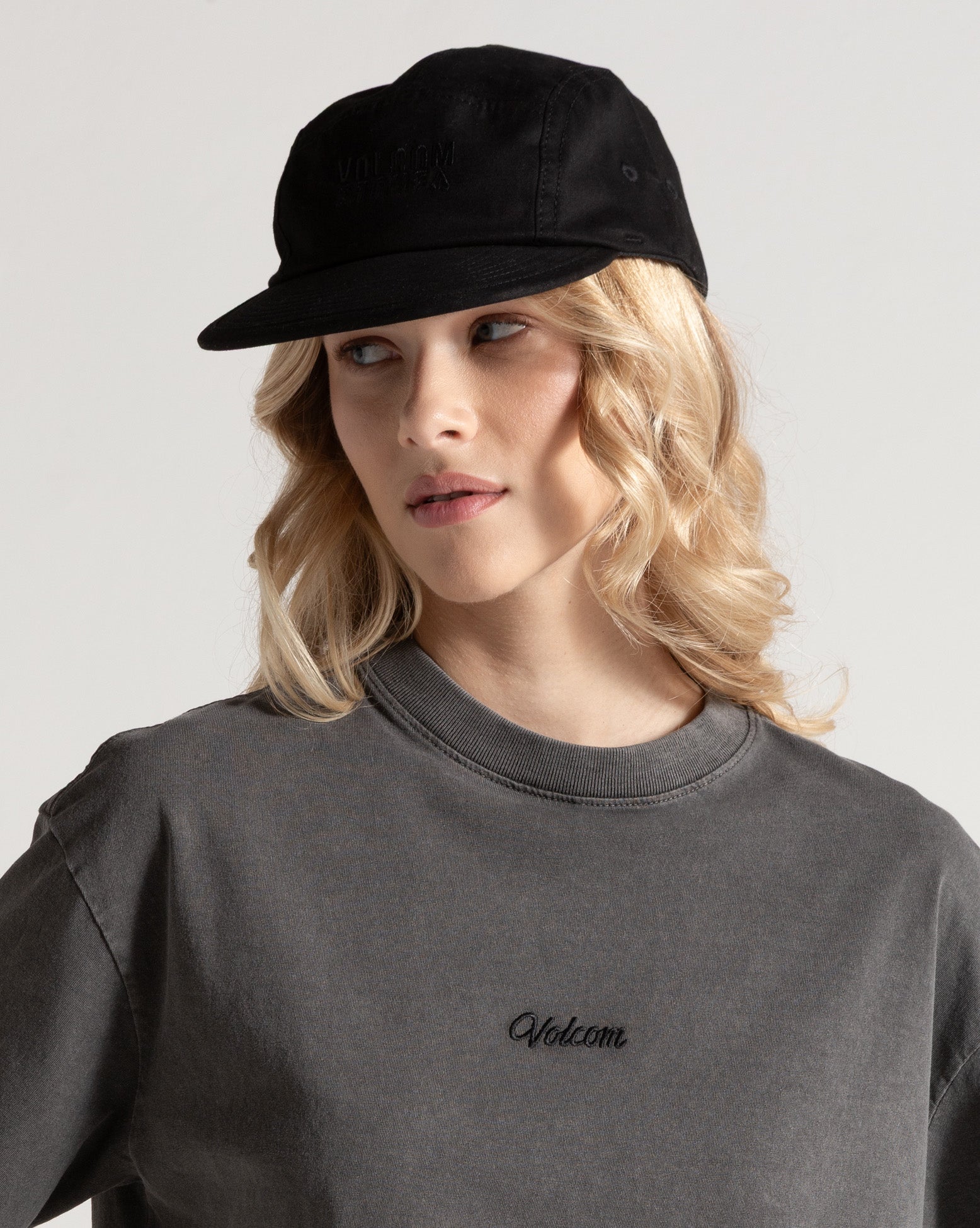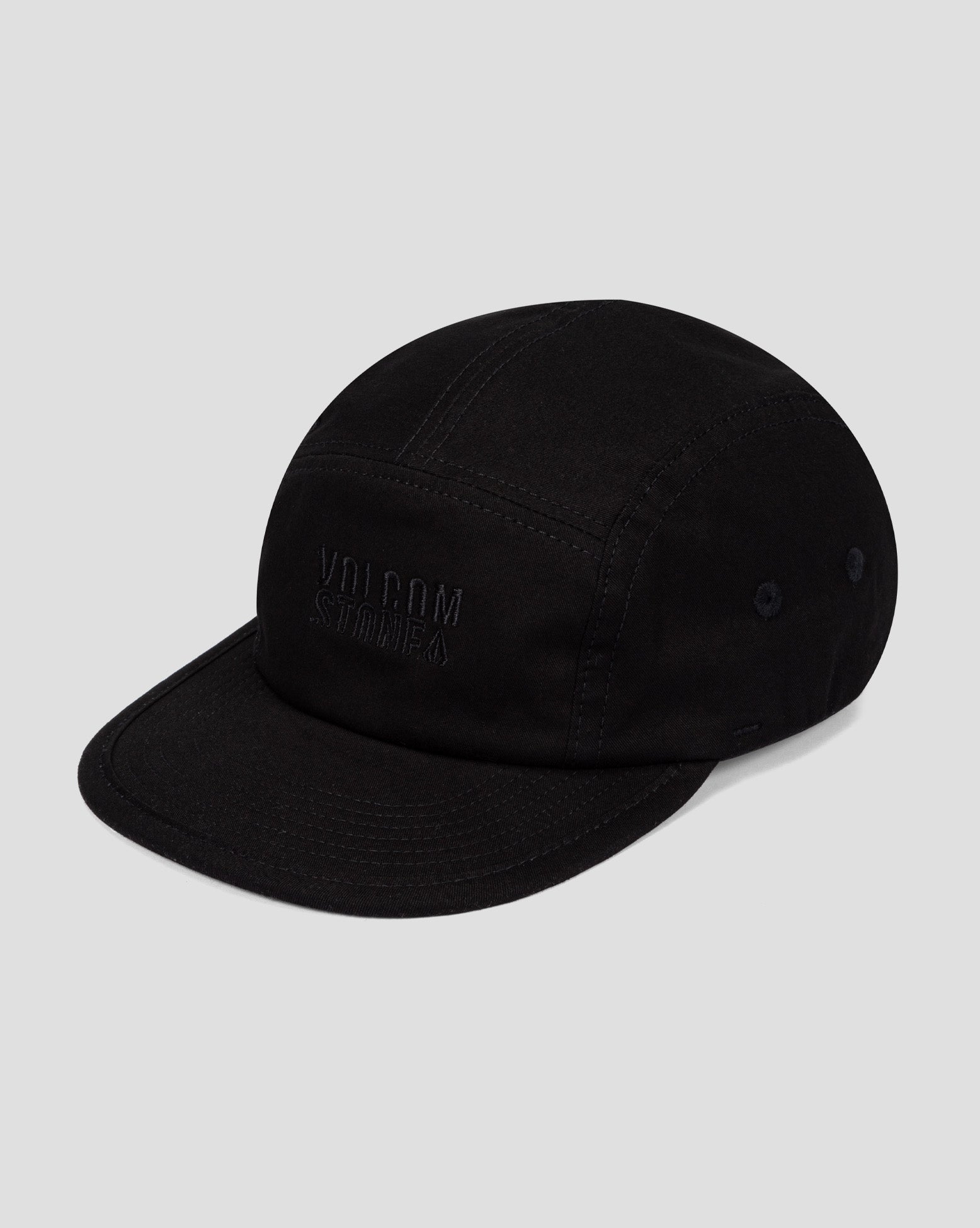 Boné Volcom Clue Preto. Modelo 5 panel desestruturado, bordado sobretom frontal e ajuste traseiro com regulador.