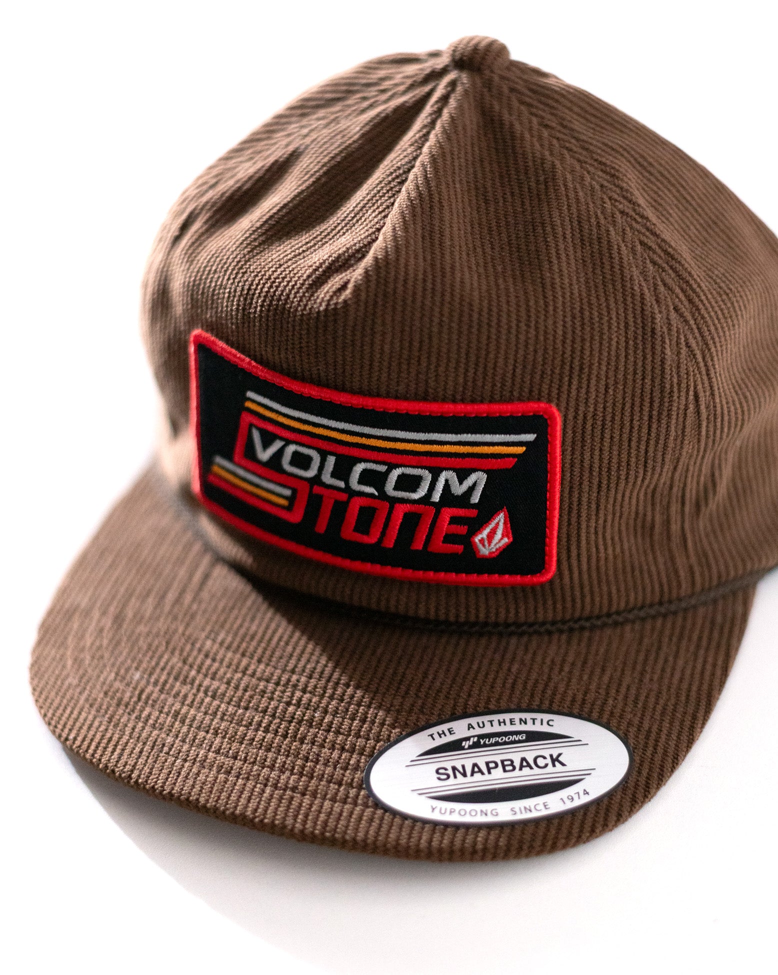 Boné Volcom Greased It Marrom. Possui patch bordado frontal, veludo cotelê, corda trançada na aba, construção com 5 painéis, aba reta, ajuste deslizante no fecho traseiro e etiqueta Volcom Stone no fecho.