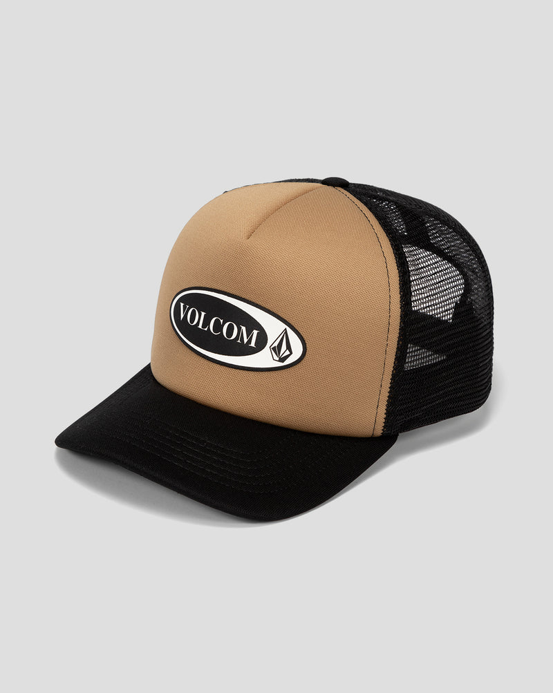 Boné Volcom Oval It Trucker. Possui aba curva estruturada, modelo trucker e estampa em silk em alto relevo.