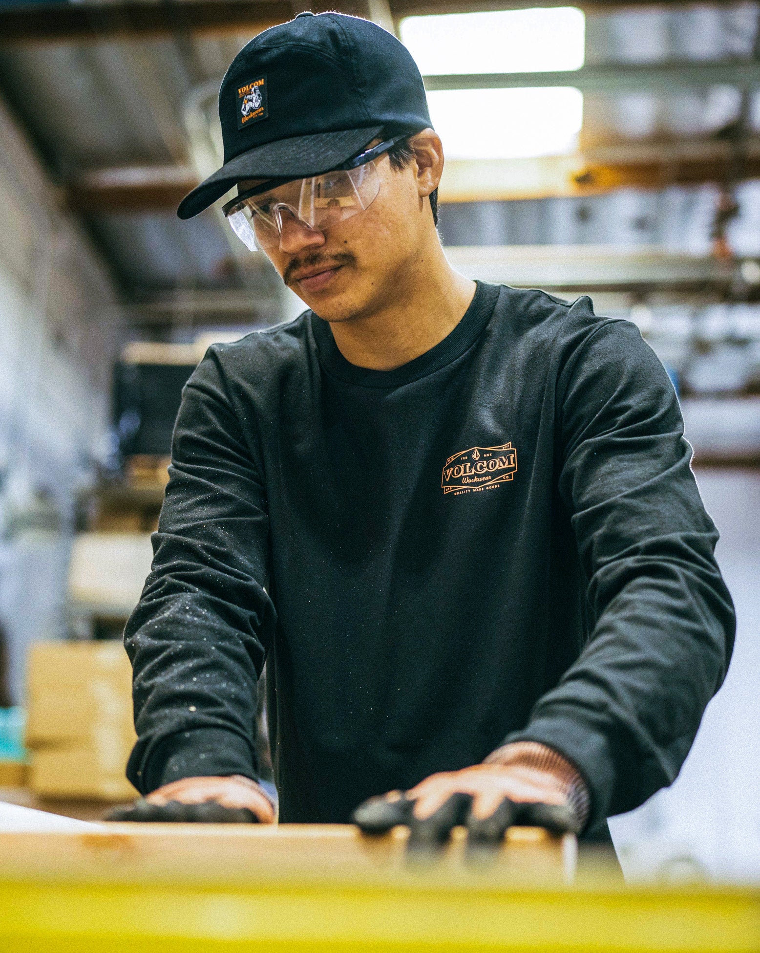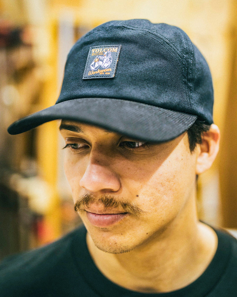 Volcom Workwear: quality made, durable goods. Boné Volcom Workwear Welder. Modelo 6 panel desestruturado, fechamento em velcro e etiqueta frontal.