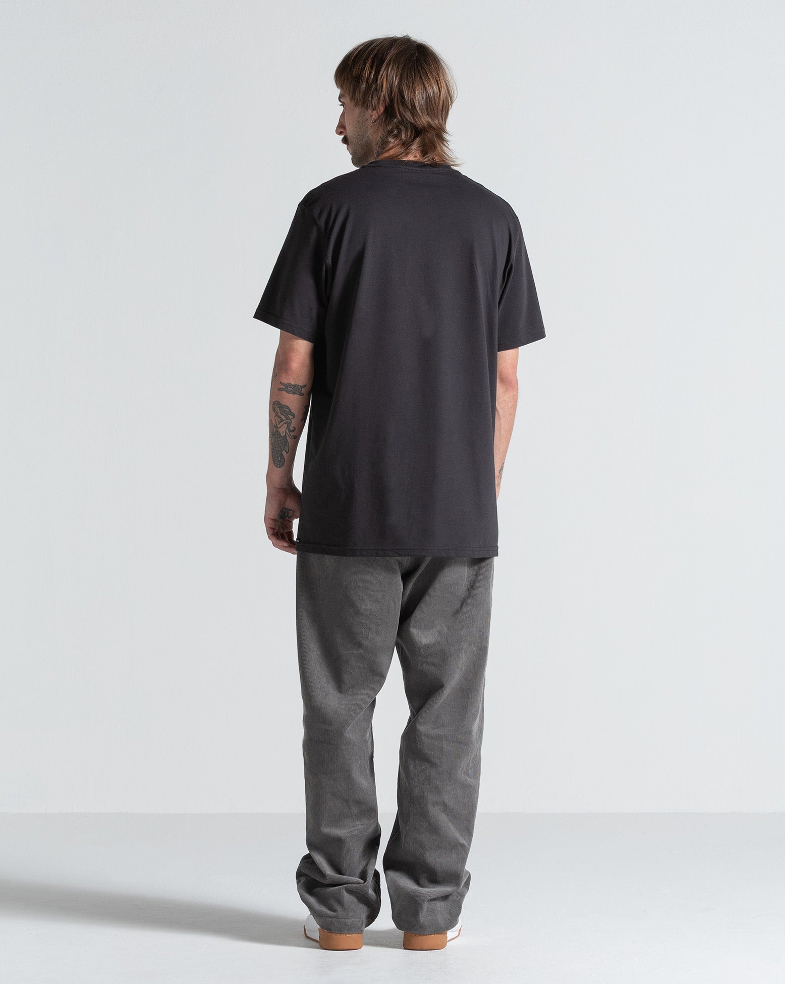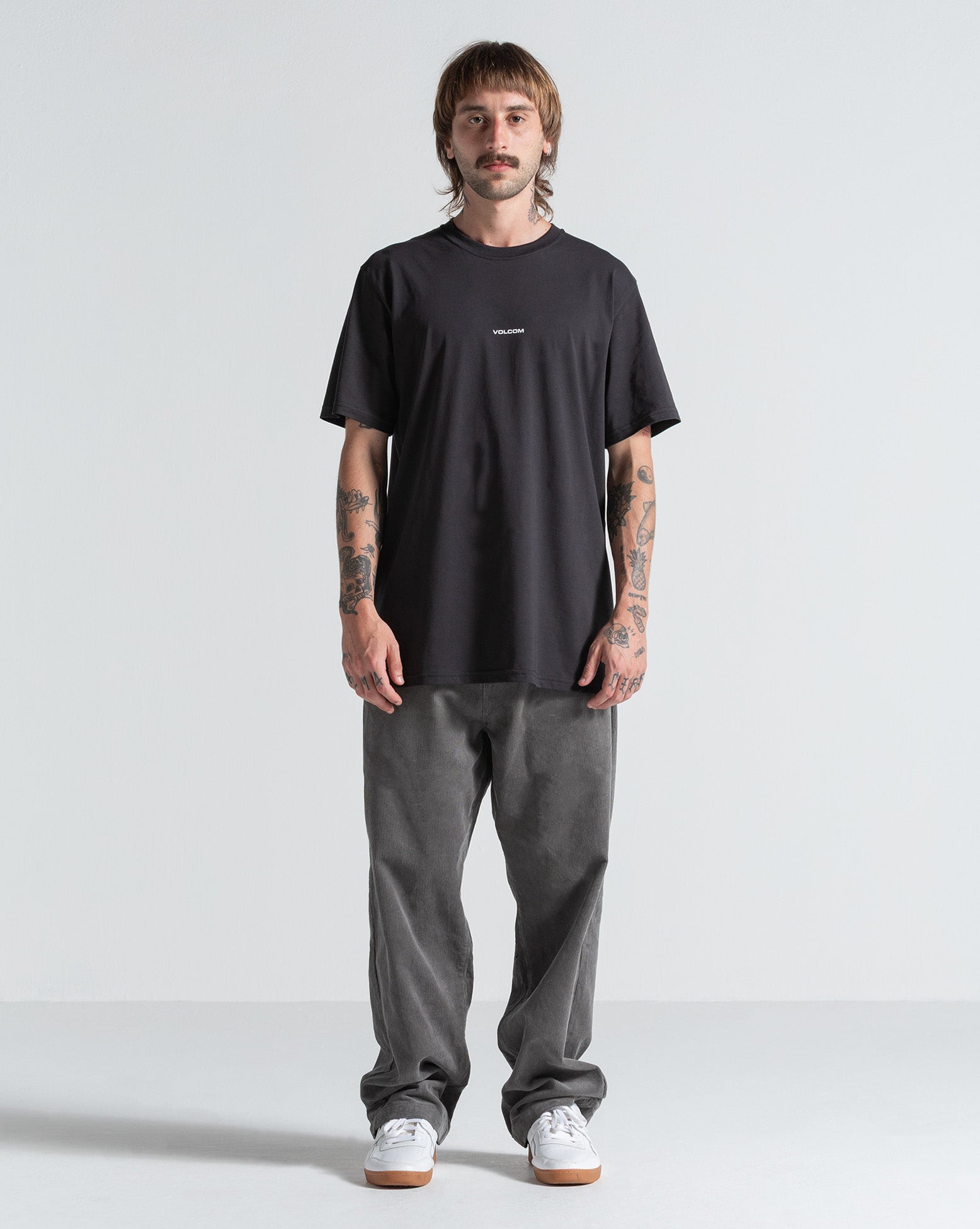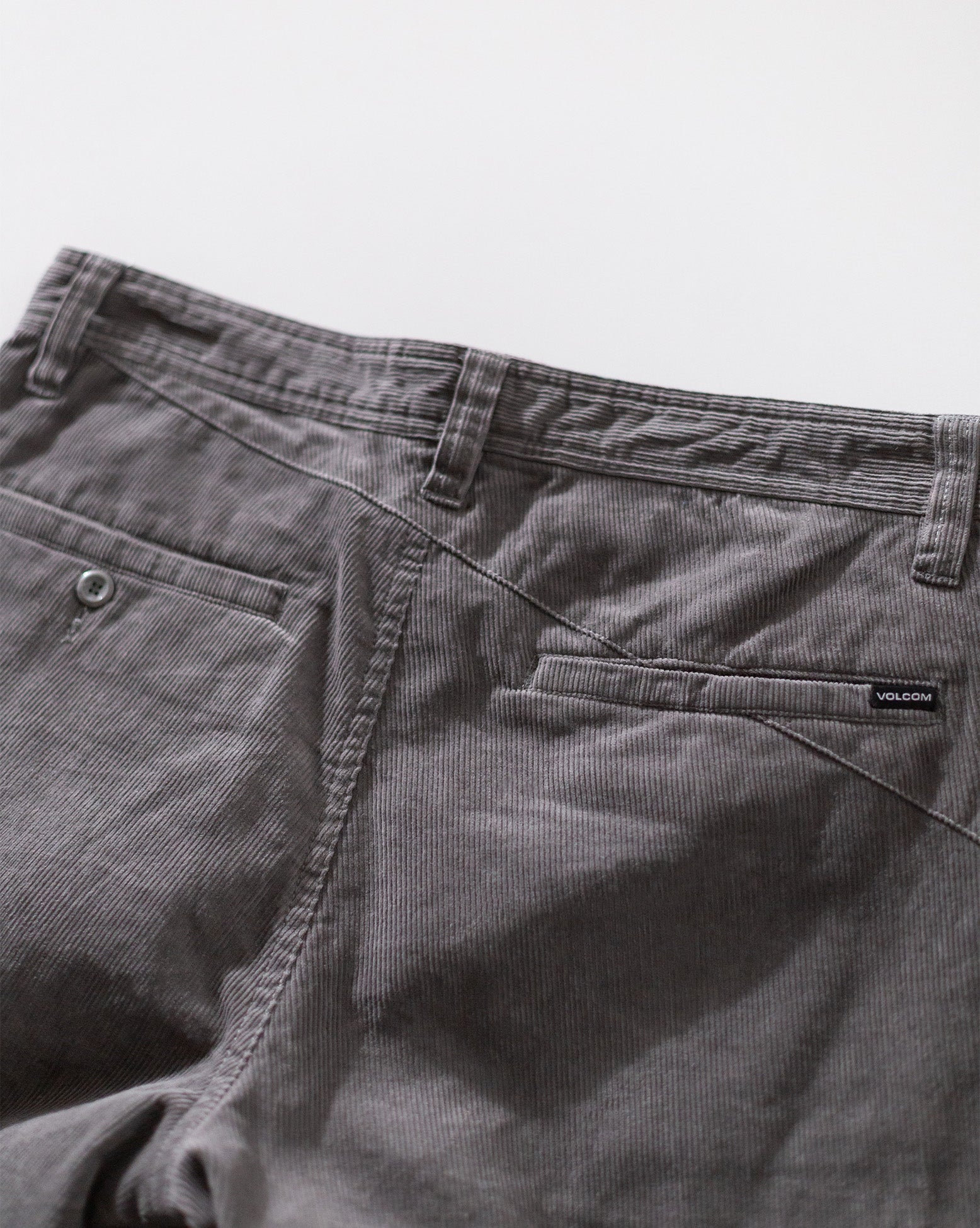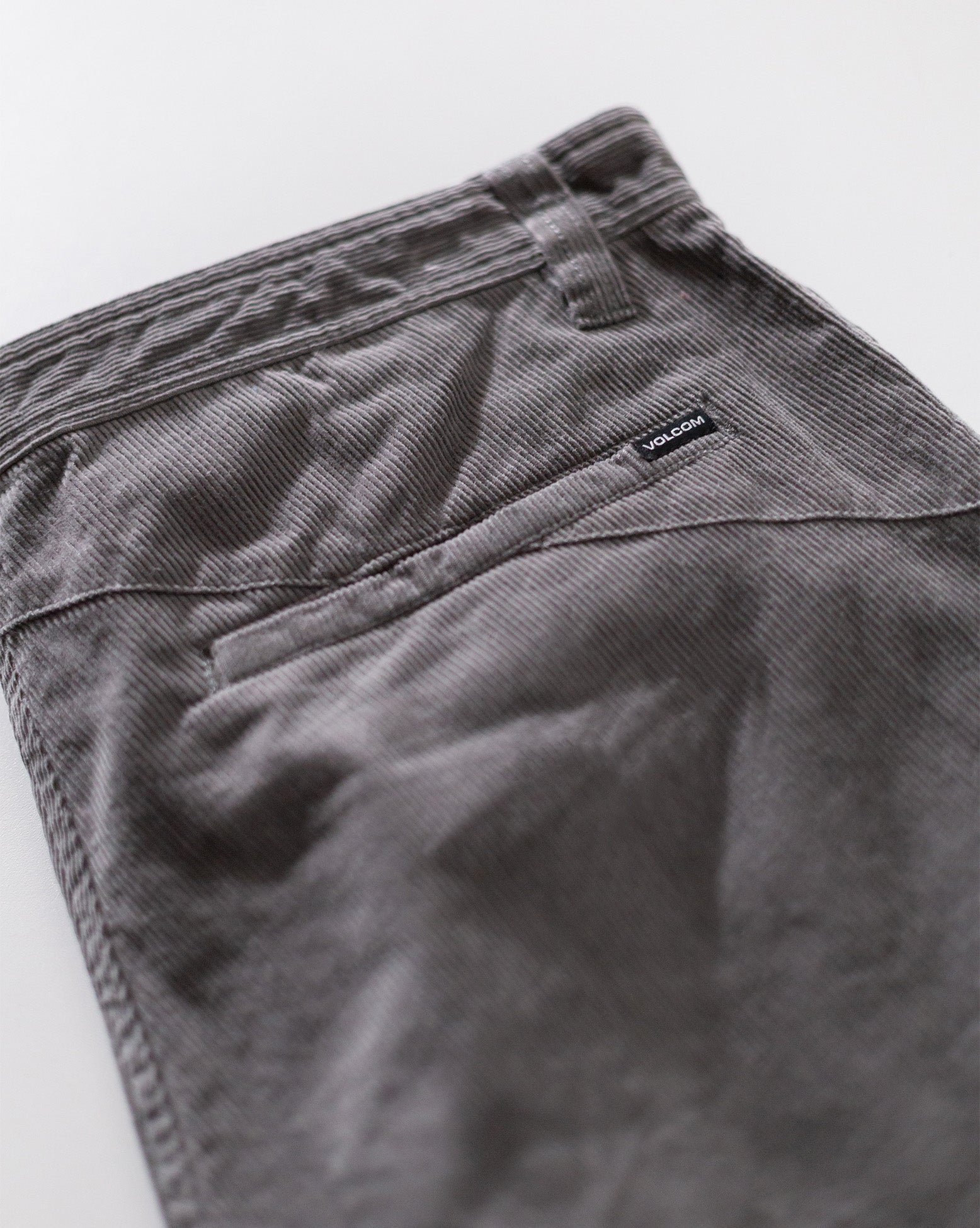 Calca Especial Volcom Frickin Loose Tapered Pewter. Possui modelagem ampla, múltiplos bolsos, bordado Volcom Stone na perna, etiqueta Volcom no bolso traseiro, botão indestrutível, fechamento em zíper, pala traseira assimétrica, tecido em veludo cotelê e silk interno.