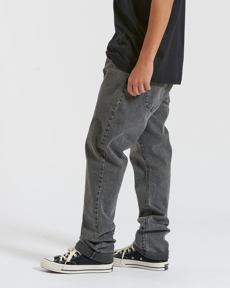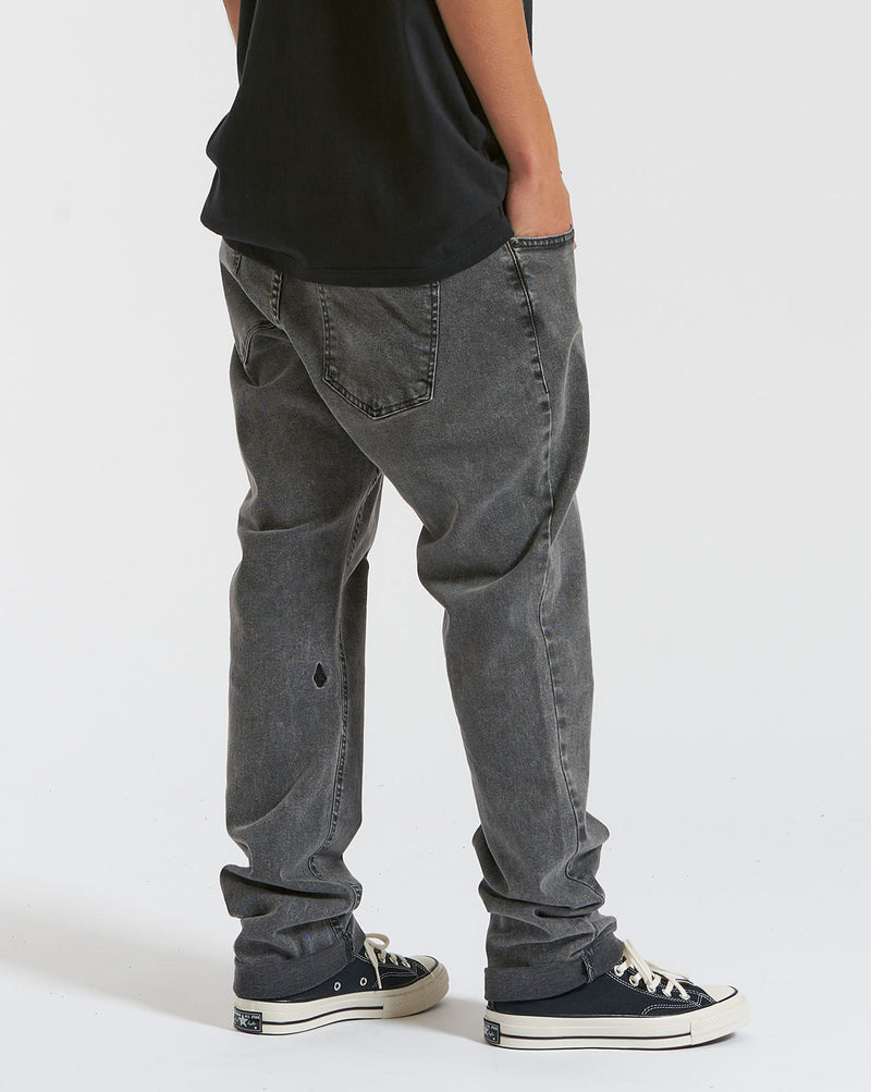 Calça Jeans Volcom Black Wash Vorta. Possui modelagem intermediária, duplo passante, bordado Volcom Stone na perna e no bolso traseiro e patch no cós traseiro.