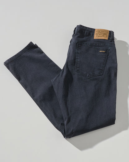 Calça Jeans Volcom Dark Black Vorta. Possui modelagem slim, duplo passante, patch no cós traseiro, bordado Volcom Stone na perna e no bolso traseiro e estampa em silk no forro do bolso.