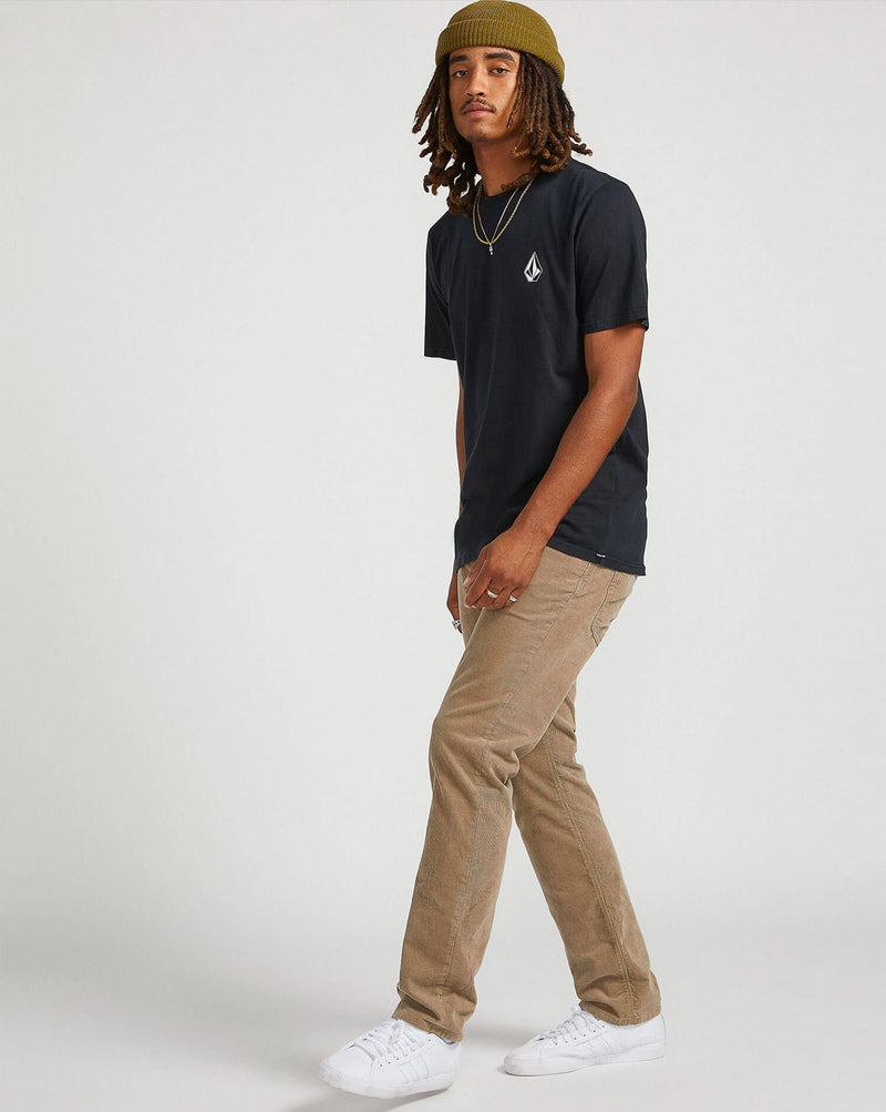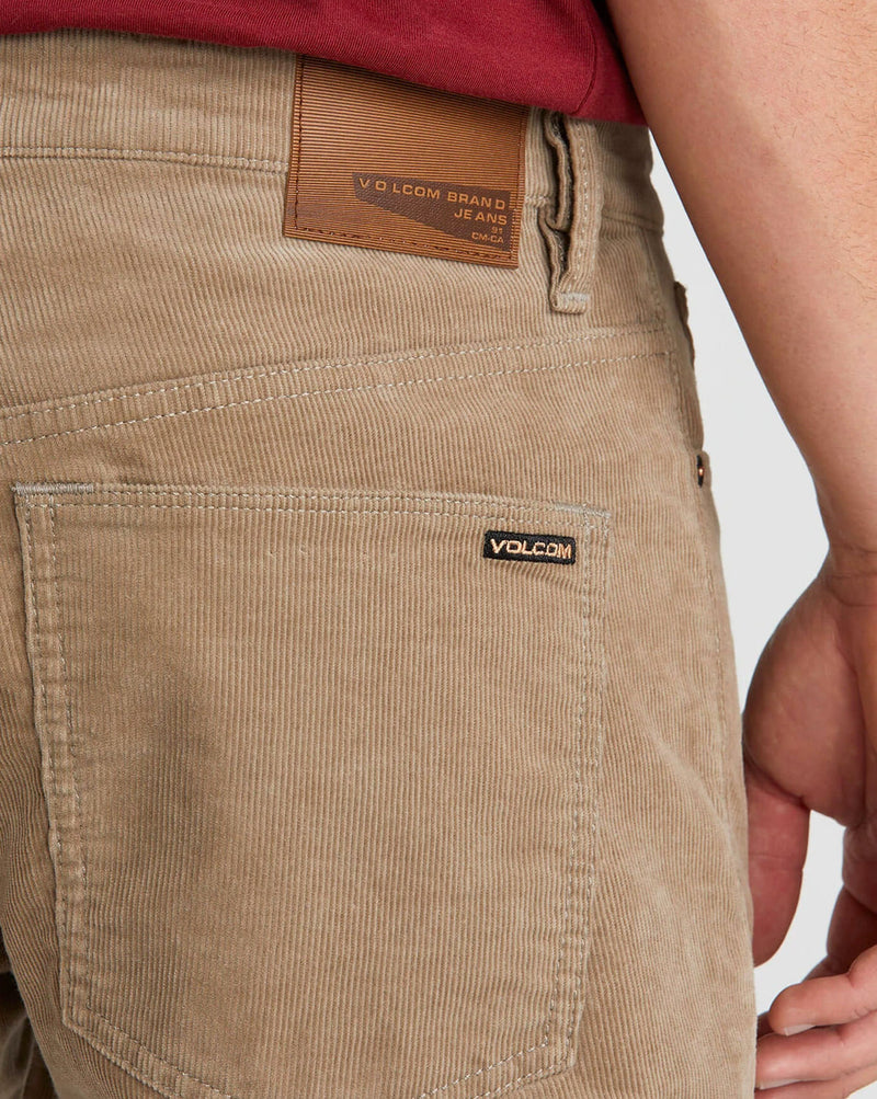 Calça Jeans Volcom Solver Bege. Possui modelagem slim, patch no cós traseiro, bordado Volcom Stone no bolso traseiro