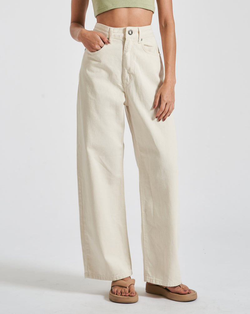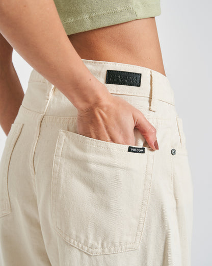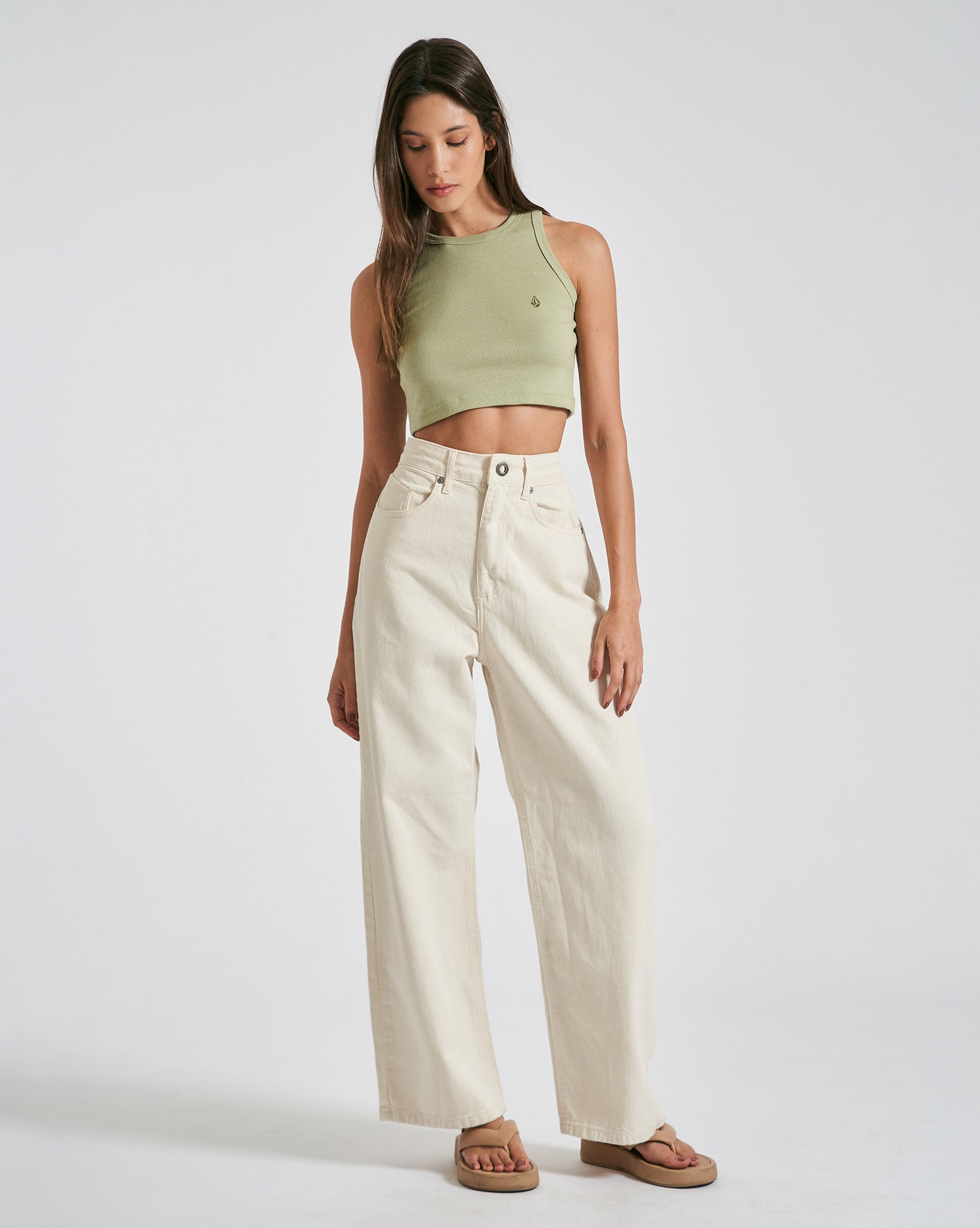 Calça Jeans Volcom Weellow Sage. Possui modelagem cintura alta reta, patch Volcom no cós traseiro, bordado Volcom Stone na perna e acabamento em lavanderia amaciada.
