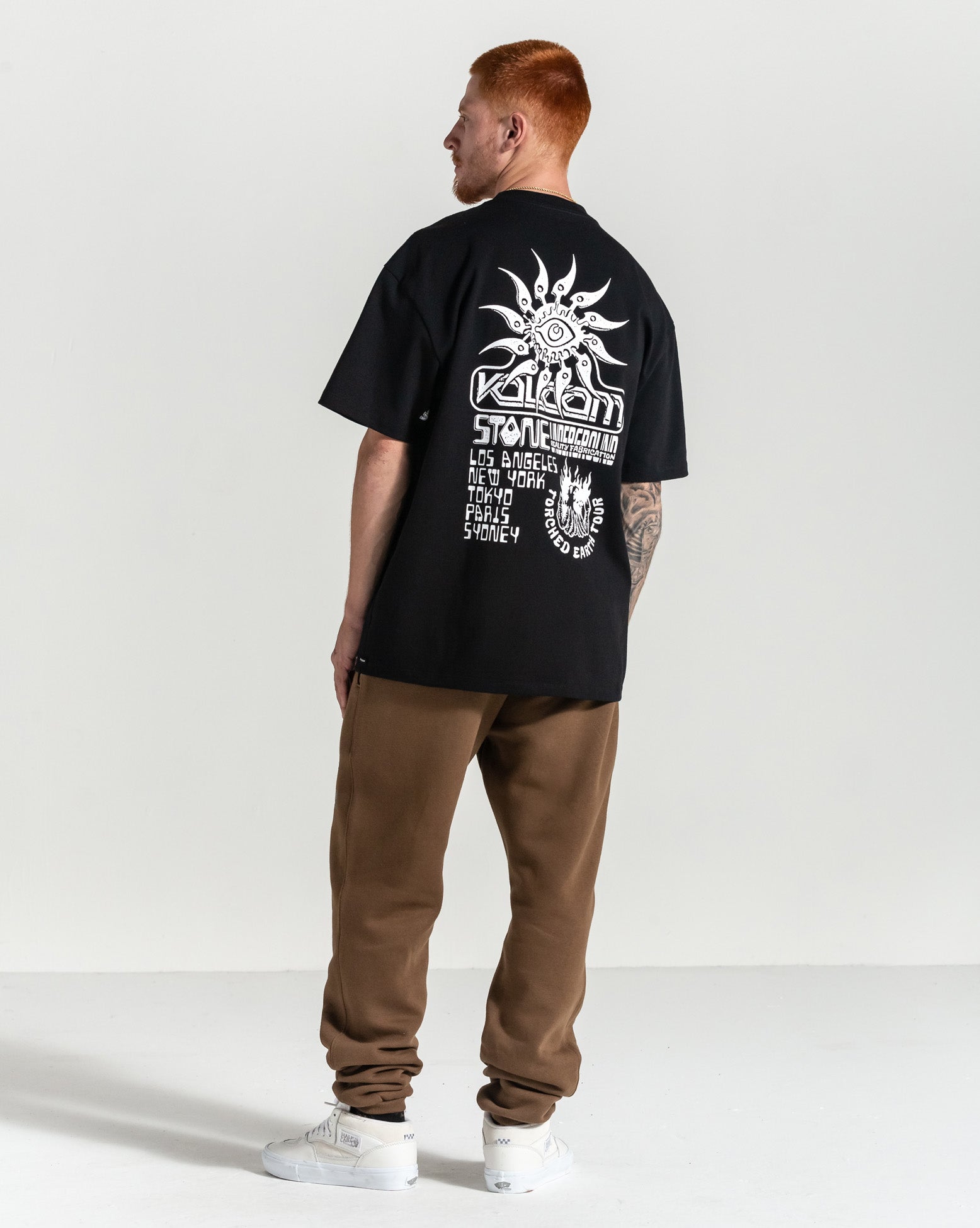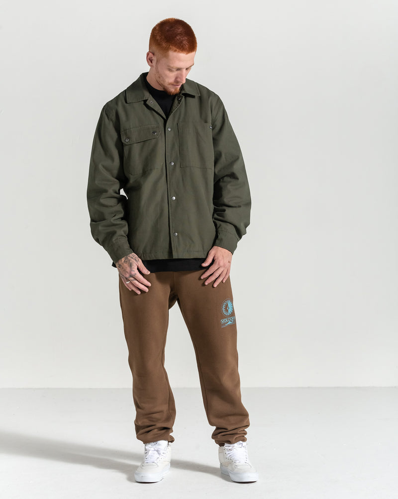 Calça Moletom Volcom Out There. Possui modelagem regular, estampa em silk na perna, bolso faca lateral, ajuste em cordão, bordado Volcom Stone na perna e etiqueta Volcom no bolso traseiro.
