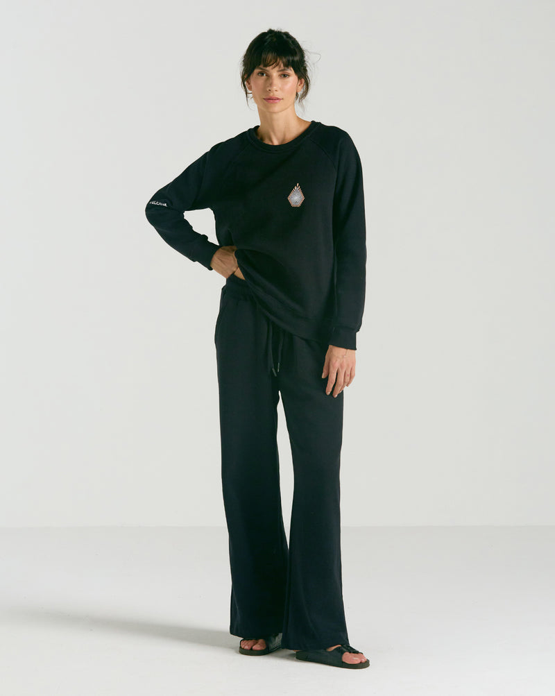 Calça Moletom Volcom Velour Ciraptor. Possui modelagem pantalona com cintura alta, elástico na cintura, ajuste em cordão, bolso faca lateral e bordado Volcom frontal.