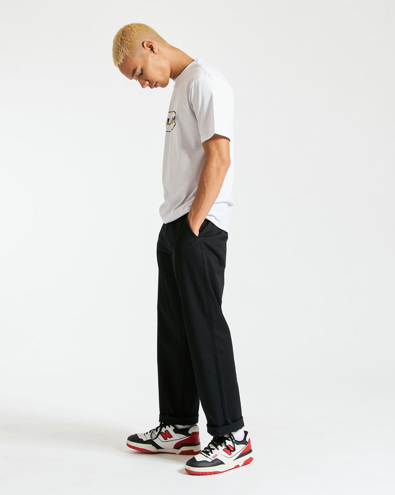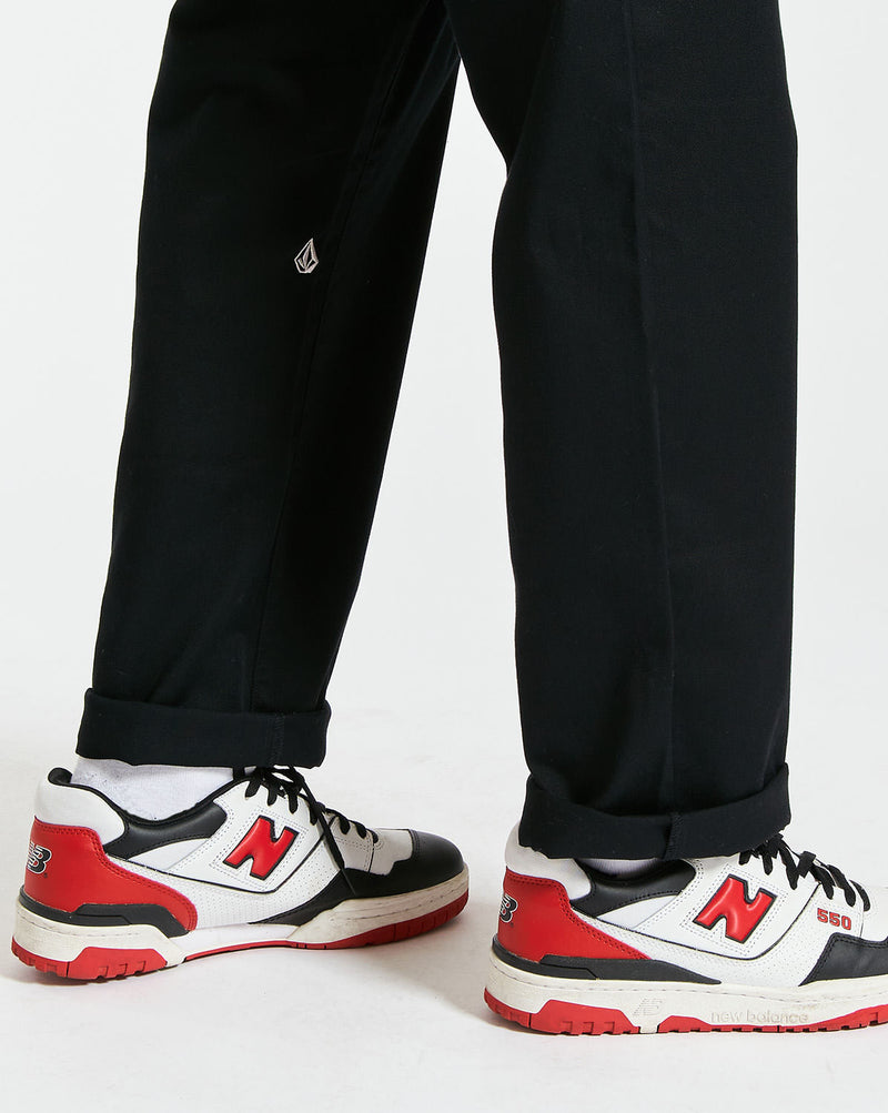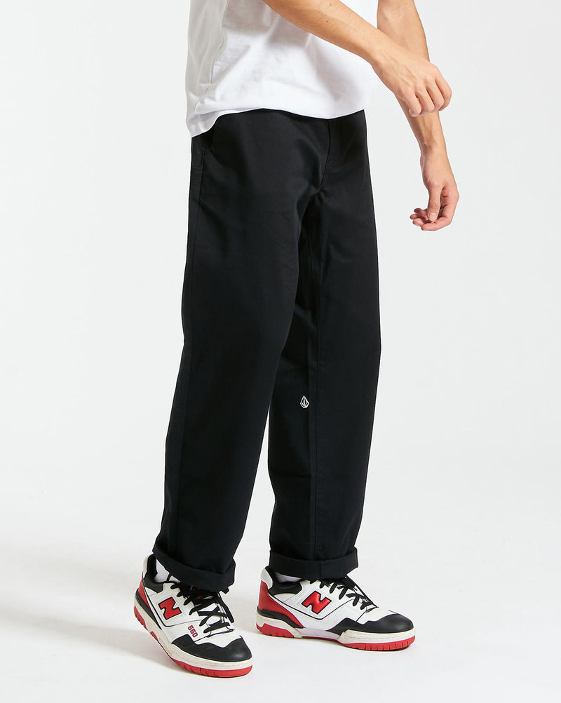 Calça Volcom Frickin Regular Stretch. Possui abertura na perna de 17", modelagem regular, bolsos frontais, pala traseira assimétrica exclusiva e assinatura Volcom.