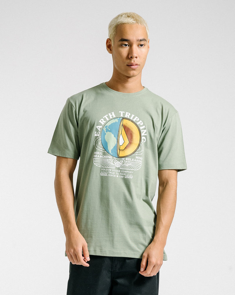 Camiseta Volcom Regular Section. Confeccionada em algodão 100% orgânico que tem como principal diferencial sua produção e cultivo que em comparação com o algodão convencional tem muito mais benefícios ao meio ambiente.