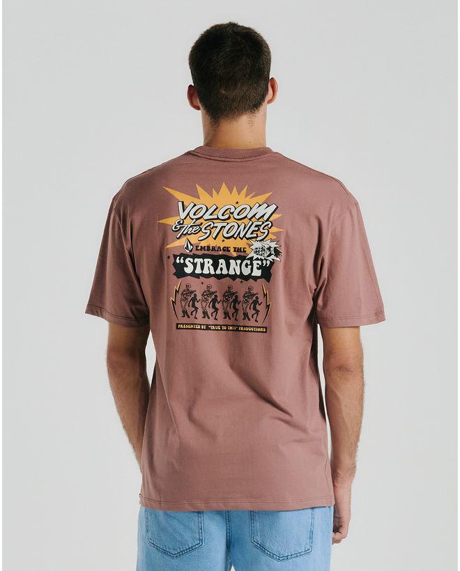 Camiseta Volcom Embrace. Possui modelagem oversized, estampa em silk frontal e nas costas, assinatura Volcom na manga, etiqueta Volcom na barra e viés contrastante.