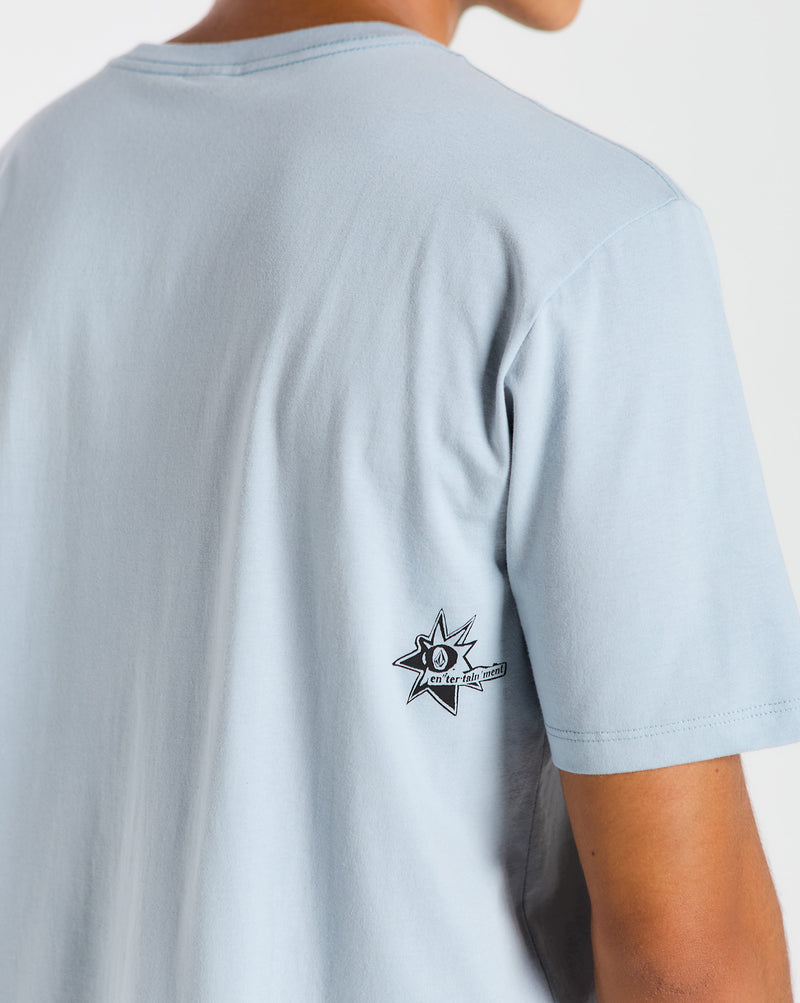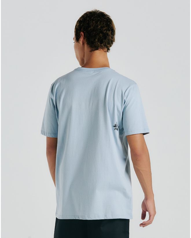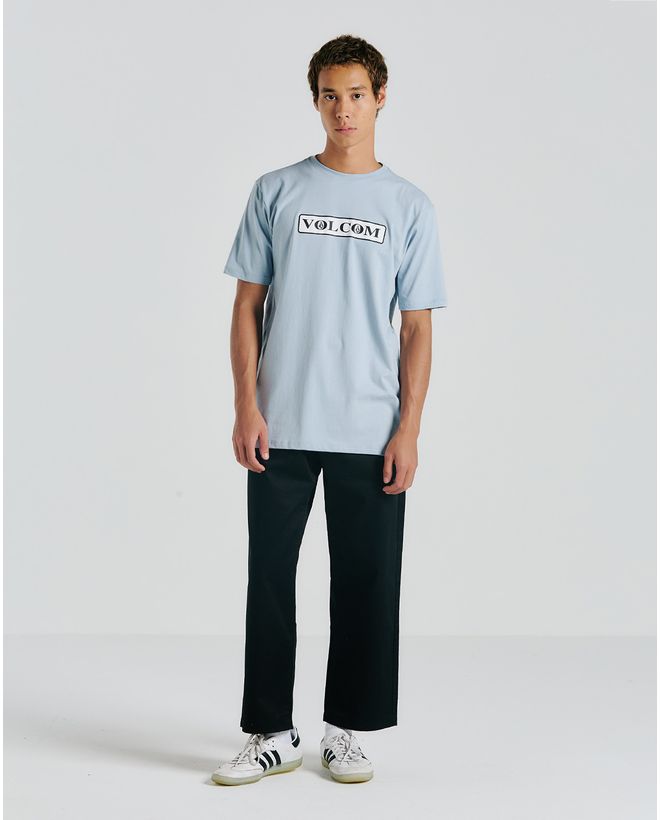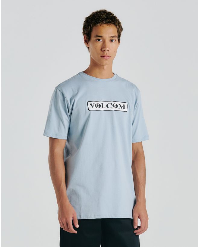 Camiseta Volcom Dual Stone. Possui modelagem regular, estampa em silk frontal e nas costas, assinatura Volcom na manga e viés contrastante.