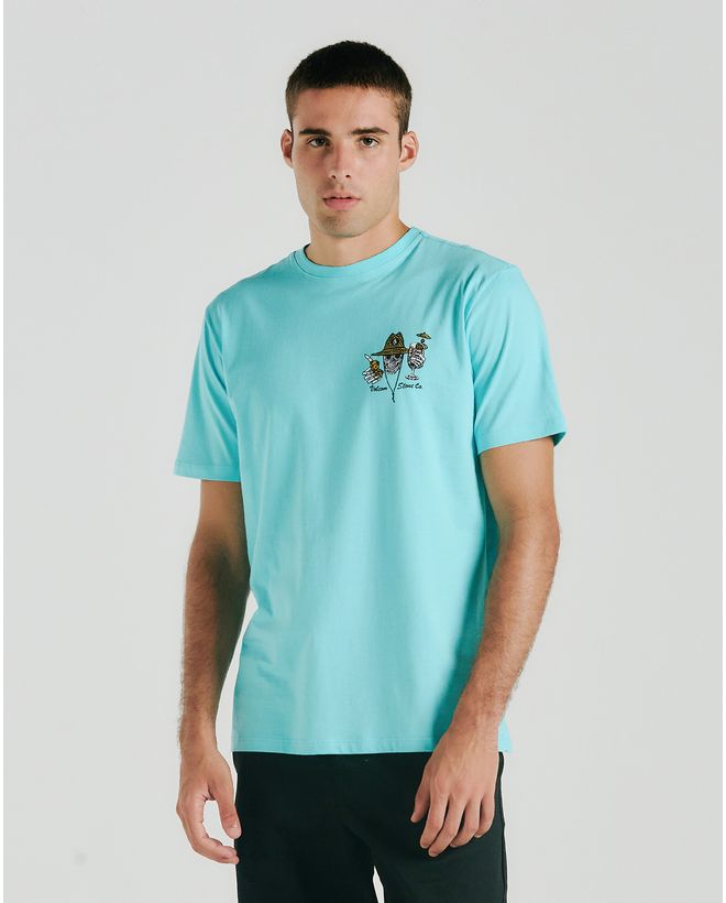 Camiseta Volcom Pair A Dice. Possui modelagem regular, estampa em silk frontal e nas costas, assinatura Volcom na manga e viés contrastante.