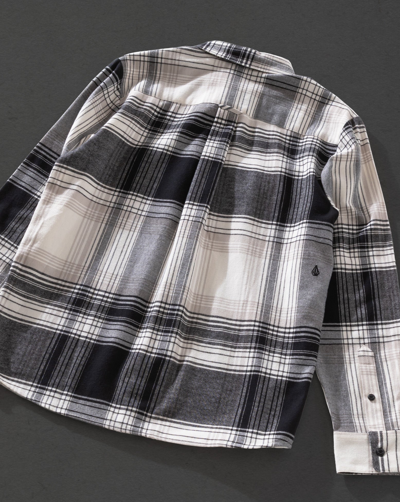 Camisa Manga Longa Volcom Park Dirty White. Possui modelagem regular, bordado Volcom Stone traseiro, bolsos frontais com fechamento em botão, botões personalizados, passador para cabide na pala traseira e etiqueta interna.