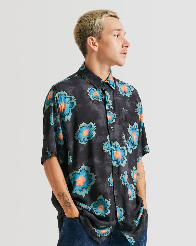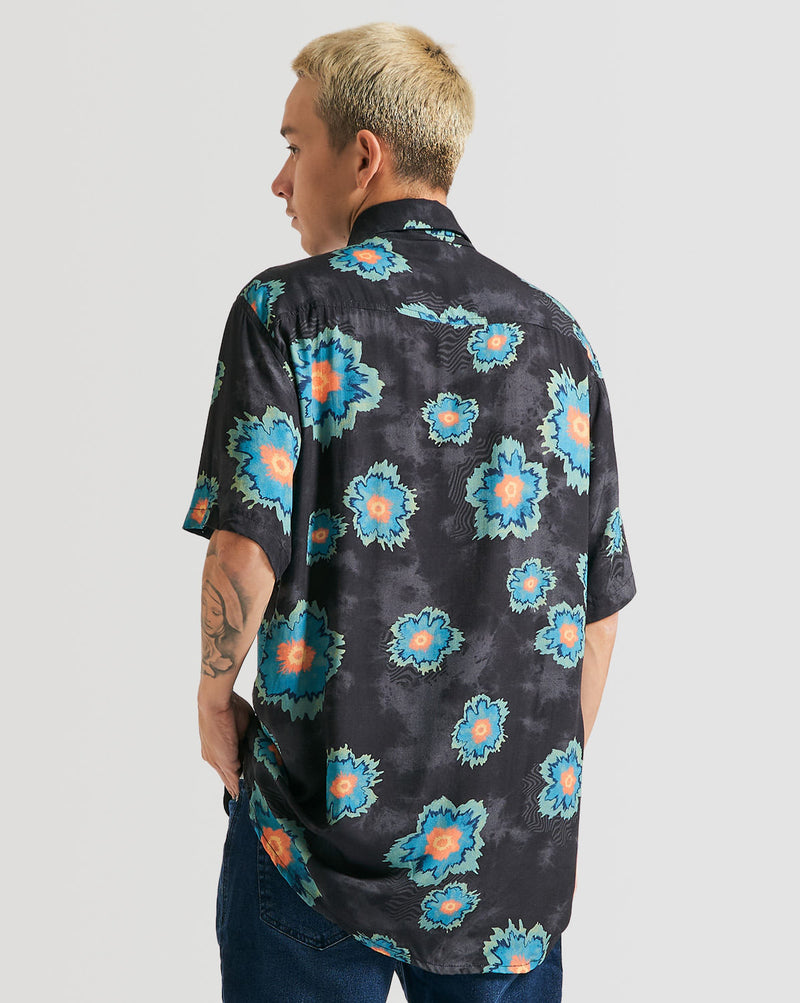 Camisa Volcom Metal Petal. Possui modelagem regular, bolso frontal, estampa full print, bordado Volcom Stone nas costas e etiqueta Volcom no bolso. Confeccionada em poliéster e viscose.