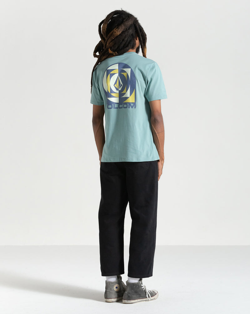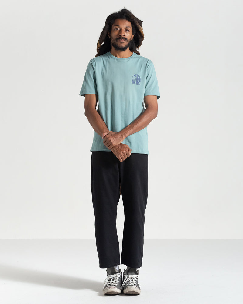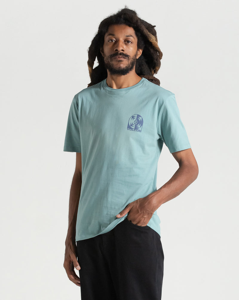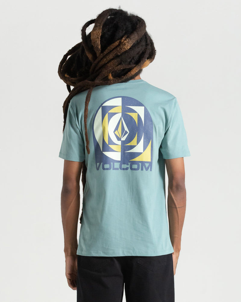 Camiseta Volcom Chamber. Possui modelagem regular, estampa em silk frontal e nas costas, assinatura Volcom na manga, etiqueta interna e viés contrastante.