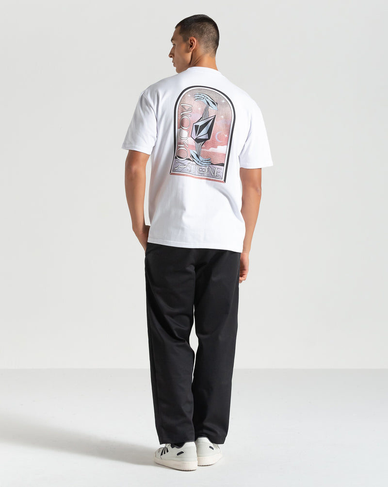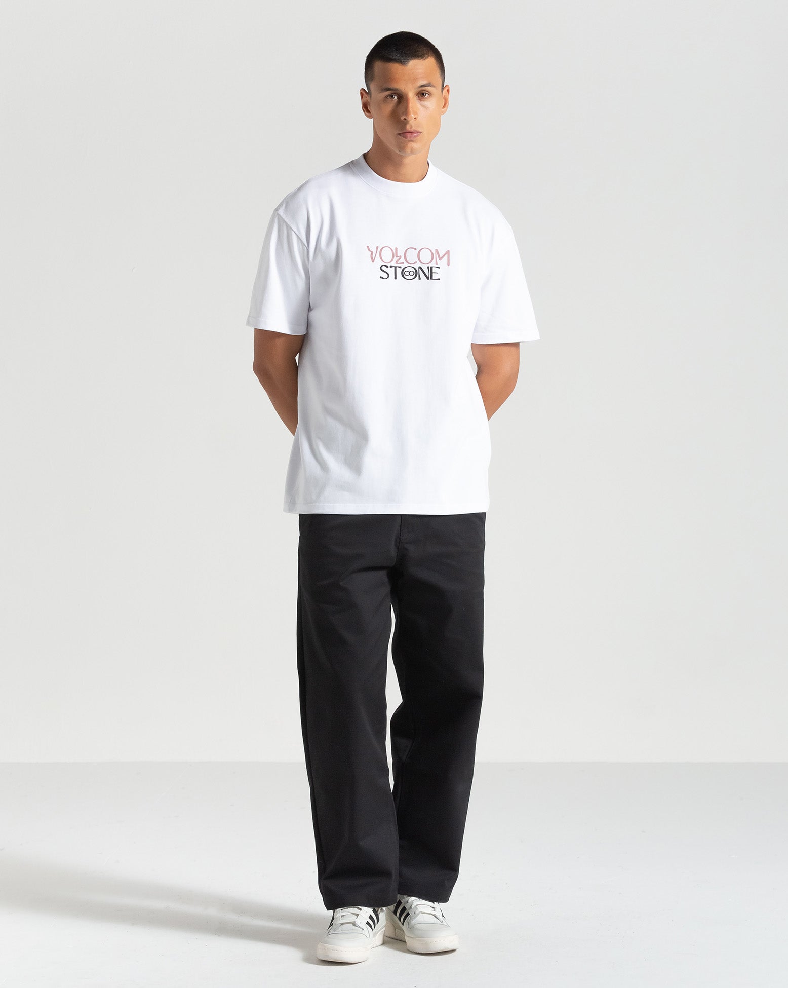 Camiseta Volcom Comfort Light Work. Possui modelagem comfort, gola de 3cm, estampa em silk frontal e nas costas, assinatura Volcom na manga e etiqueta Volcom na barra.