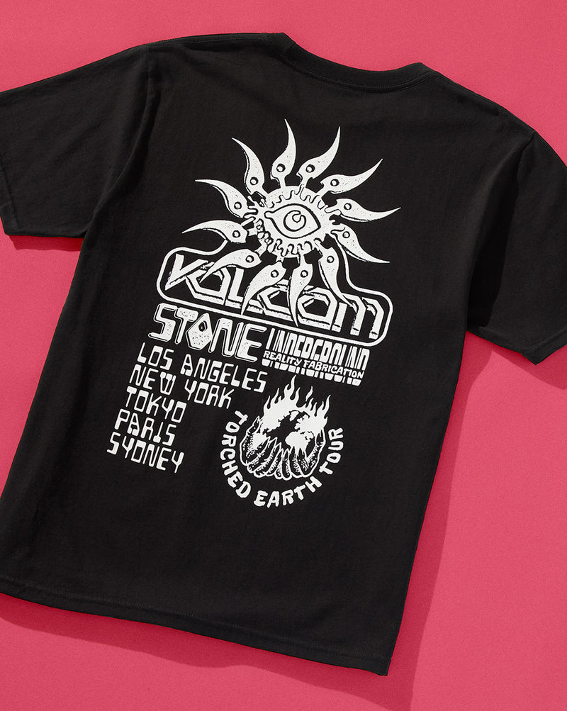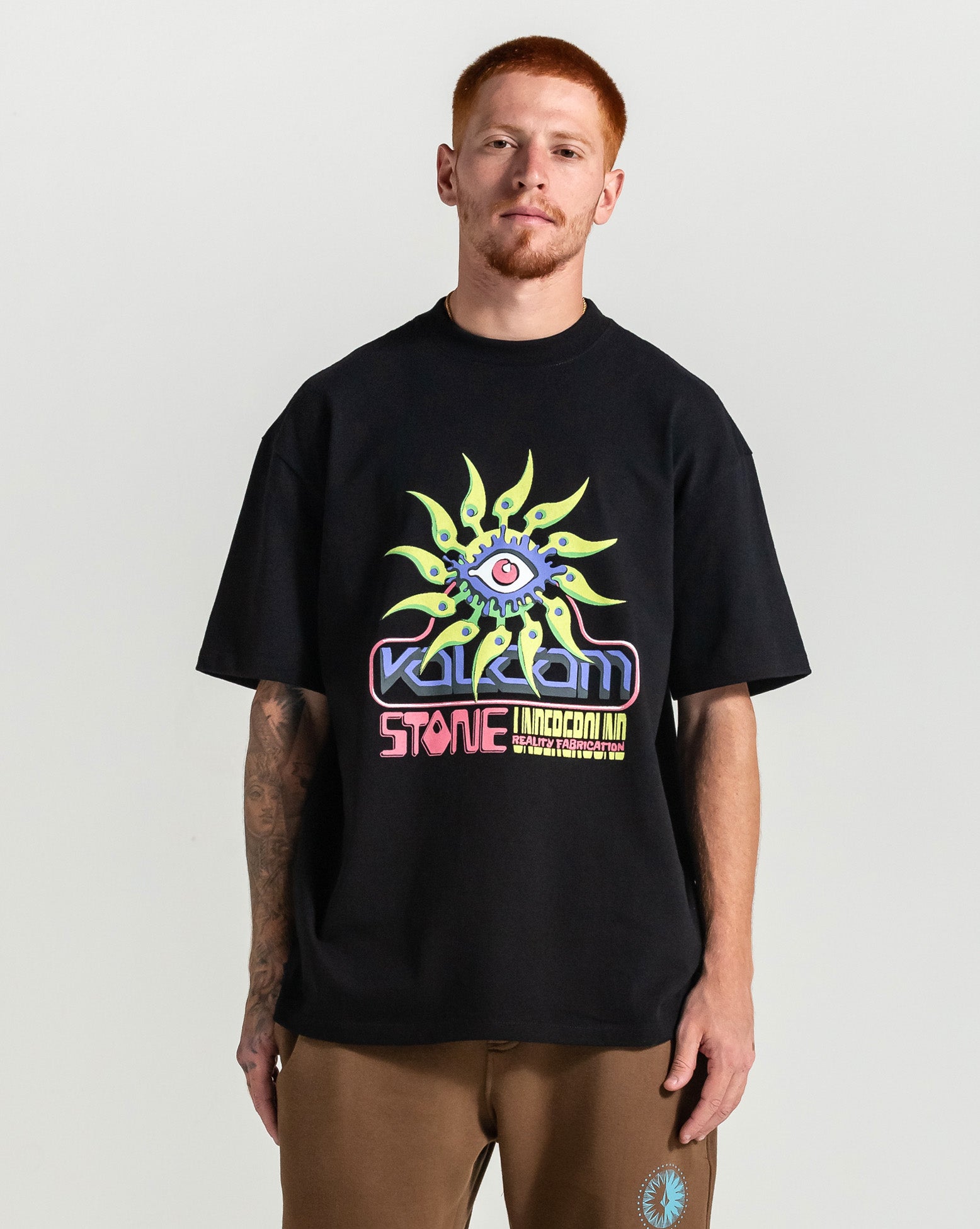 Camiseta Volcom Comfort Reality. Possui modelagem comfort, gola de 3cm, estampa em silk frontal e nas costas, assinatura Volcom na manga e etiqueta Volcom na barra.