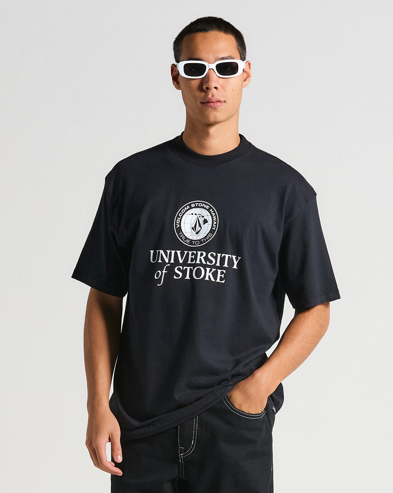 Camiseta Volcom Comfort U Of Stoke. Possui modelagem comfort, gola de 2,5cm, estampa em silk frontal, assinatura Volcom na manga e etiqueta Volcom na barra.
