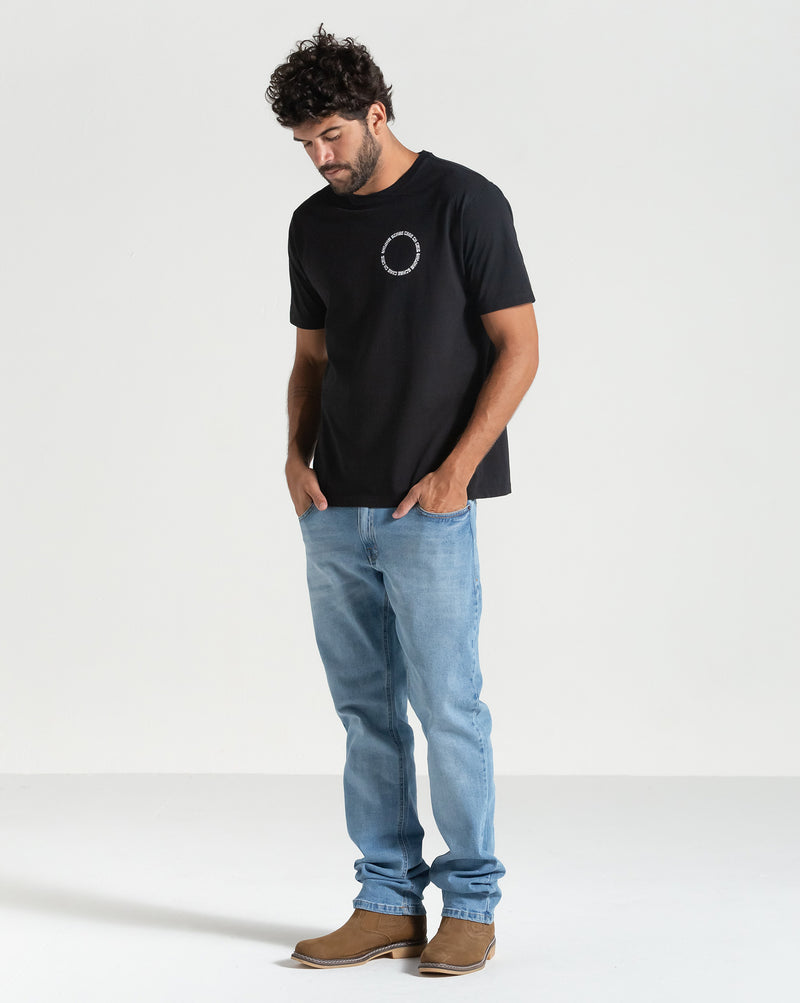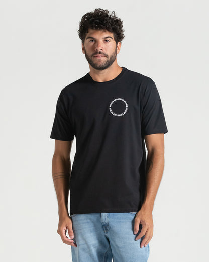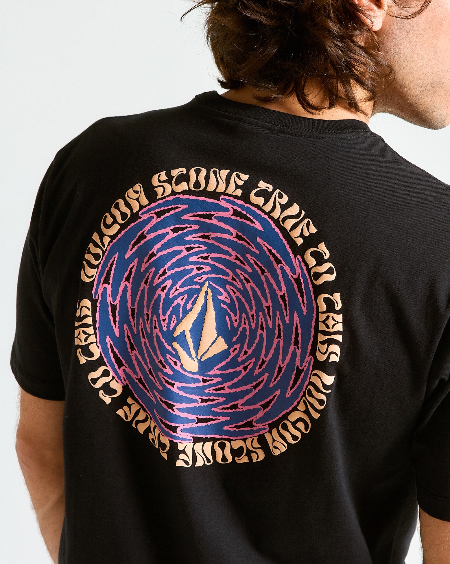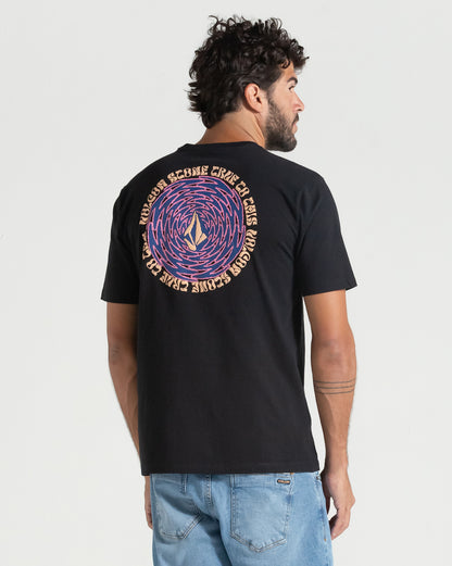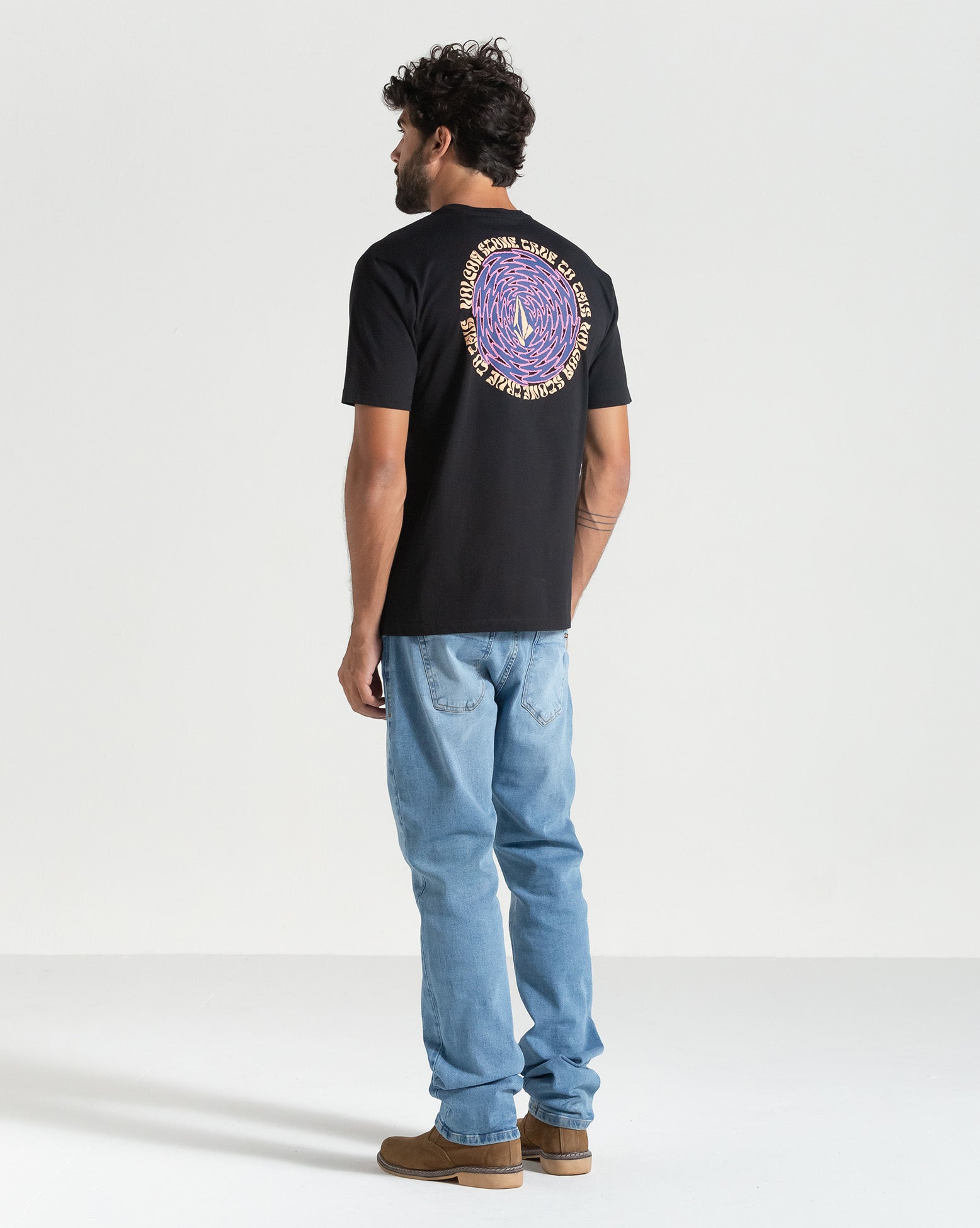 Camiseta Volcom Cylinderz. Possui modelagem regular, estampa em silk frontal e nas costas em relevo, assinatura Volcom na manga, etiqueta interna e viés contrastante.