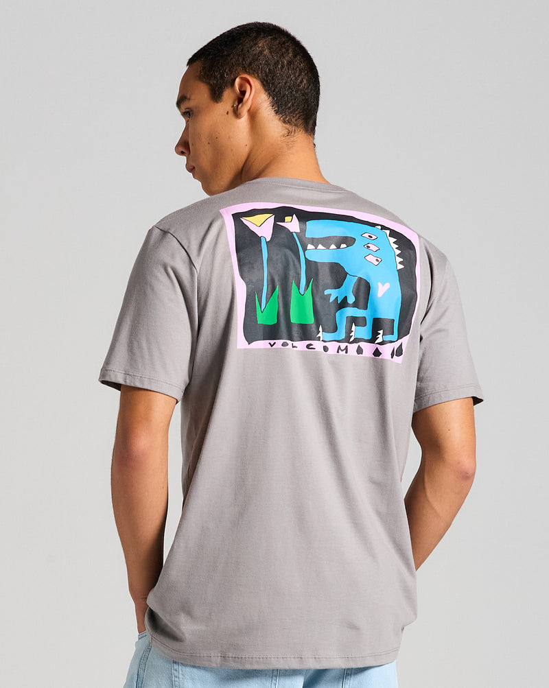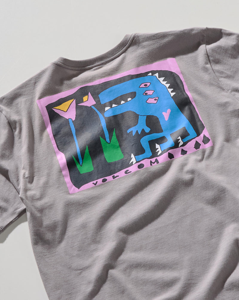 Camiseta Volcom Dino. Confeccionada em algodão 100% orgânico que tem como principal diferencial sua produção e cultivo que em comparação com o algodão convencional tem muito mais benefícios ao meio ambiente.