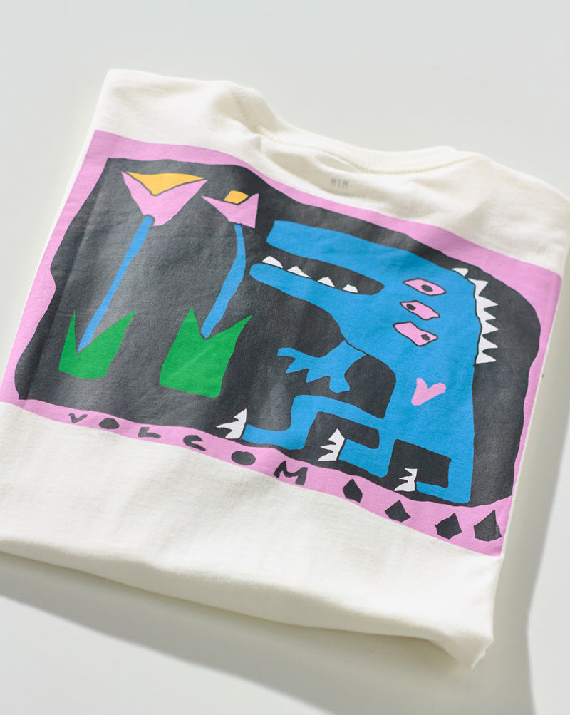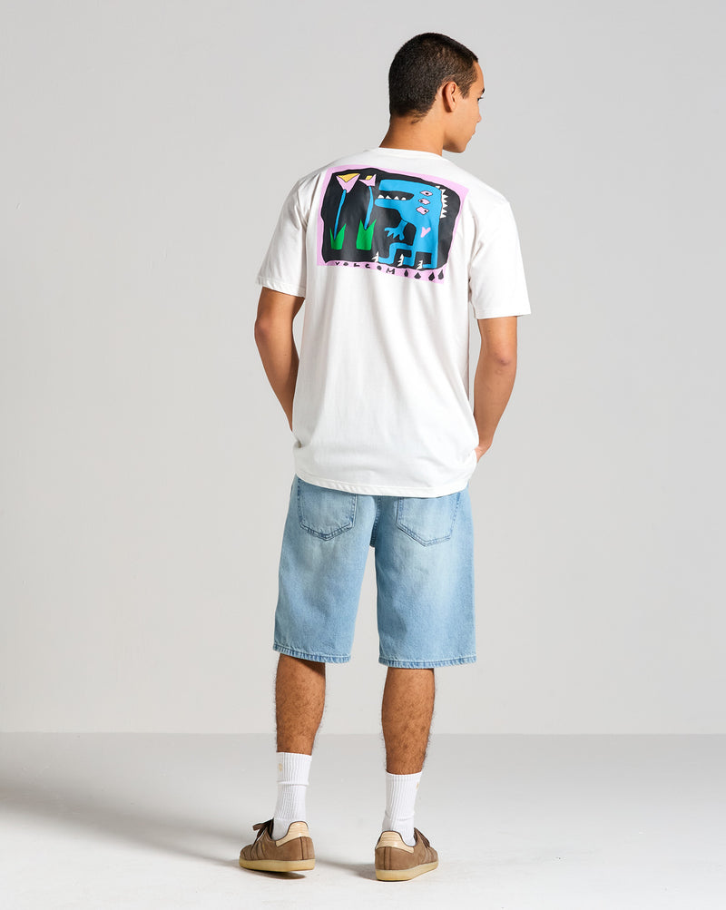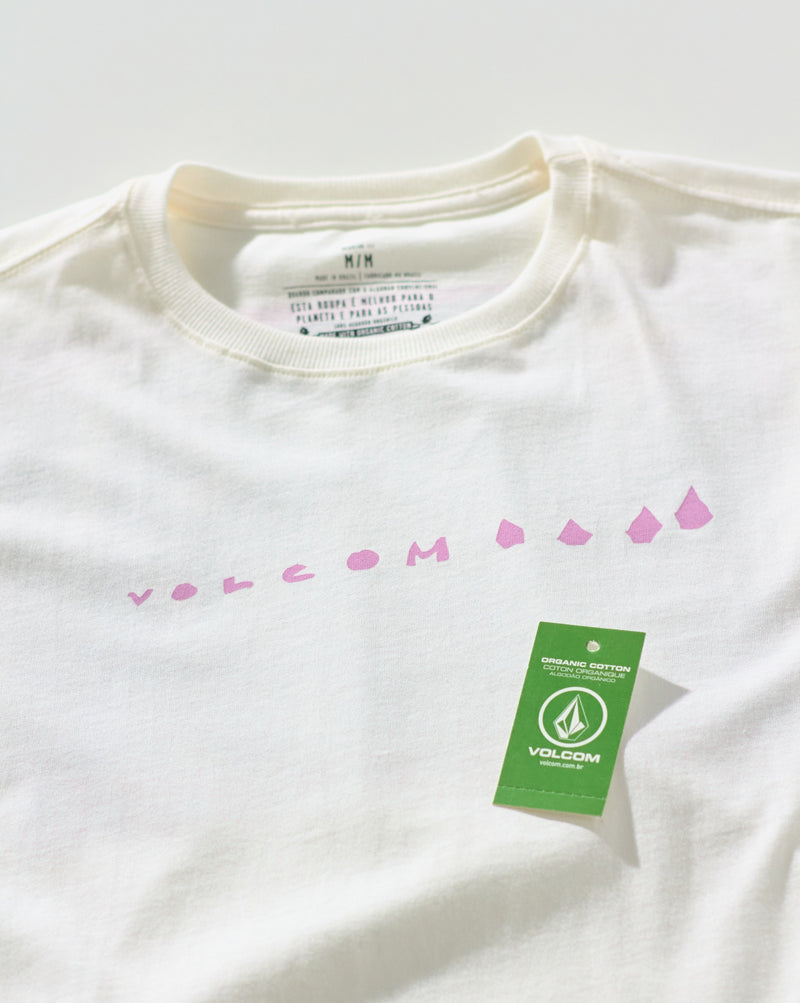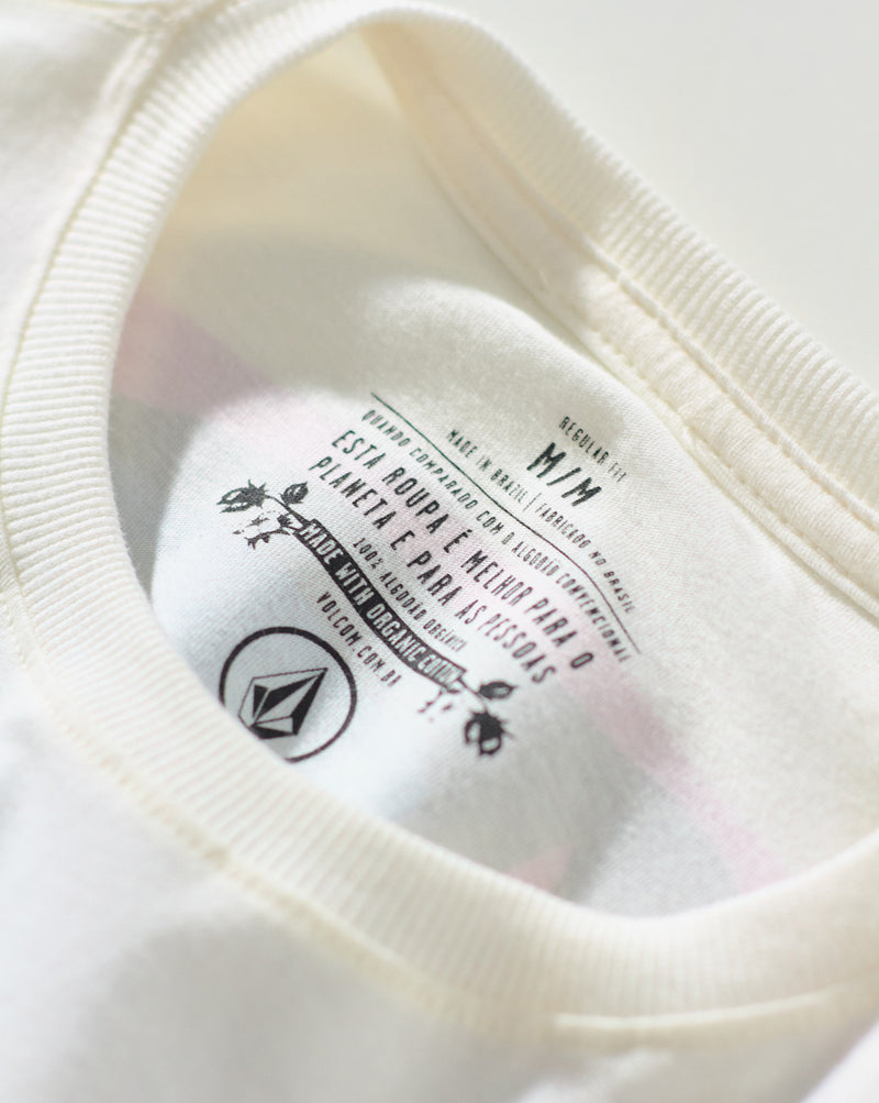 Camiseta Volcom Dino. Confeccionada em algodão 100% orgânico que tem como principal diferencial sua produção e cultivo que em comparação com o algodão convencional tem muito mais benefícios ao meio ambiente.