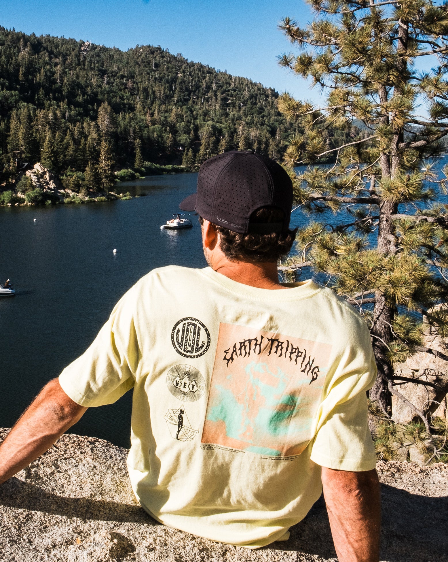 Camiseta Volcom Distance Amarela. Possui modelagem regular, silk frente e costas, assinatura Volcom na manga, etiqueta interna e viés contrastante.