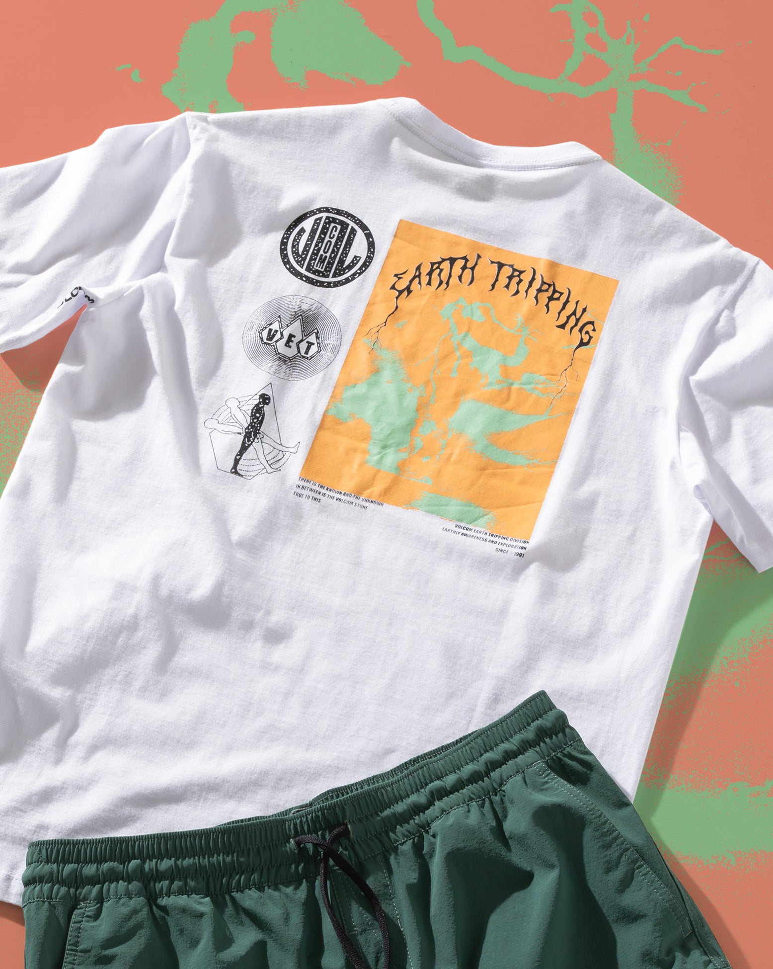 Camiseta Volcom Distance Branca. Possui modelagem regular, silk frente e costas, assinatura Volcom na manga, etiqueta interna e viés contrastante.
