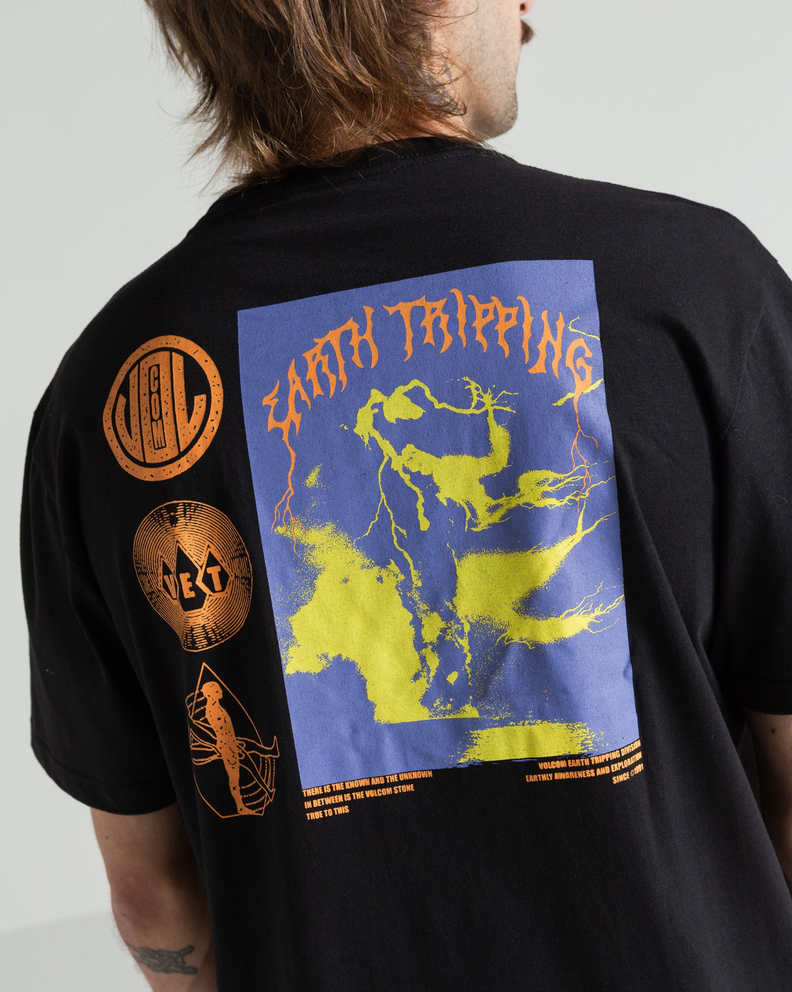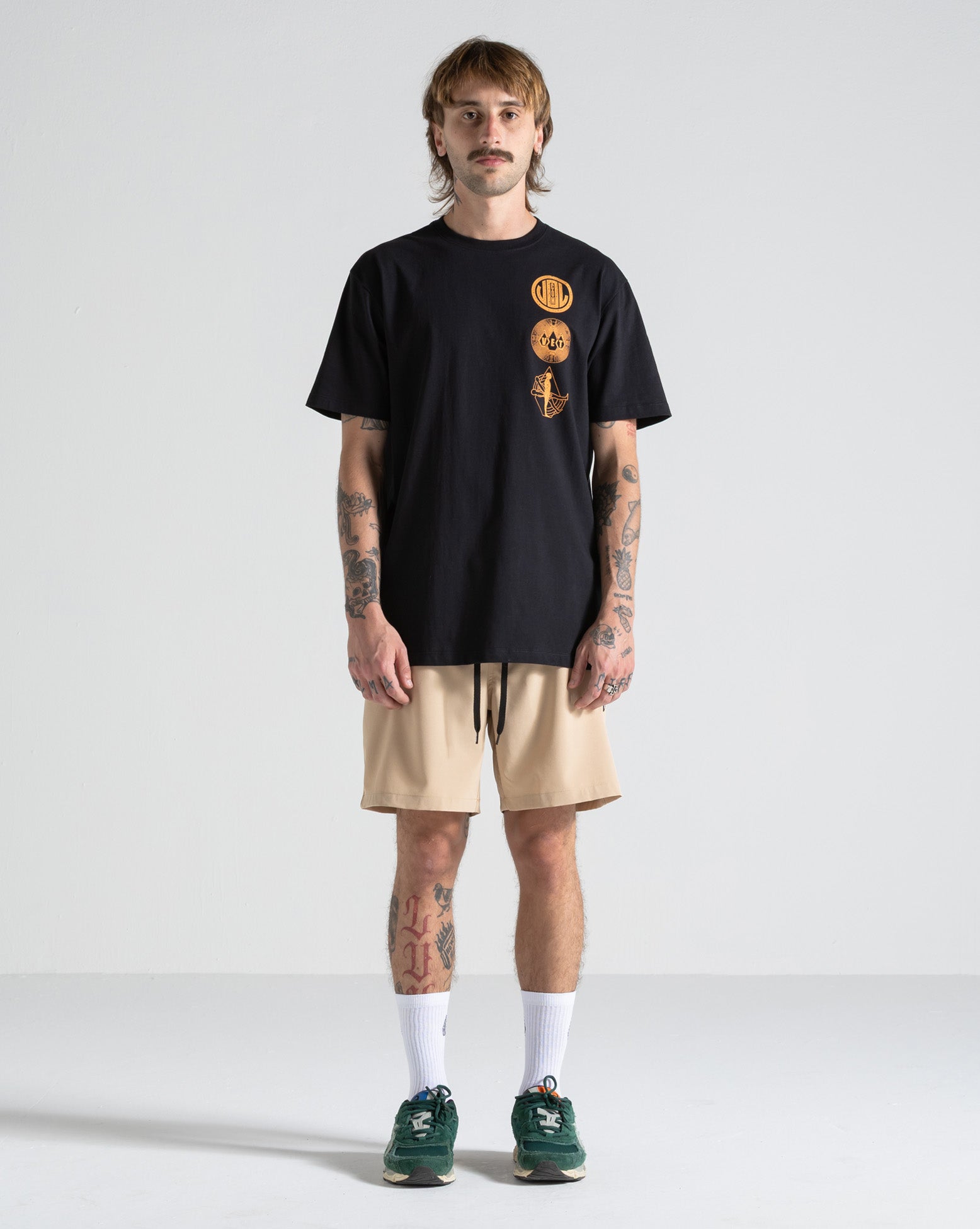 Camiseta Volcom Distance Preta. Possui modelagem regular, silk frente e costas, assinatura Volcom na manga, etiqueta interna e viés contrastante.