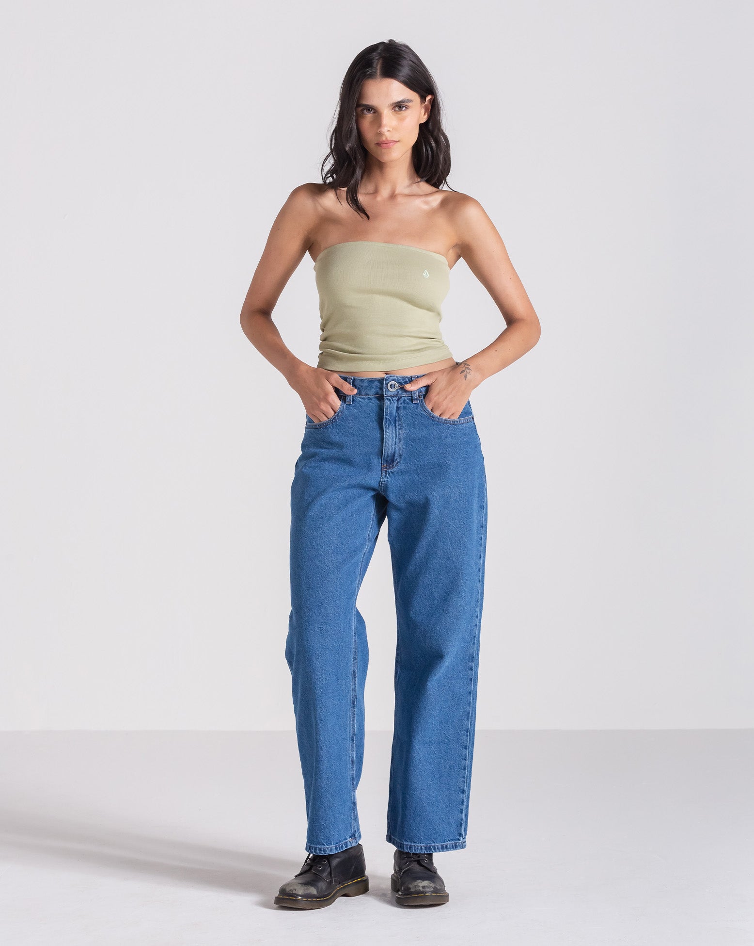 Camiseta Especial Volcom Tube. Modelagem "tomara que caia", bordado Volcom Stone frontal e plaquinha de metal Volcom.