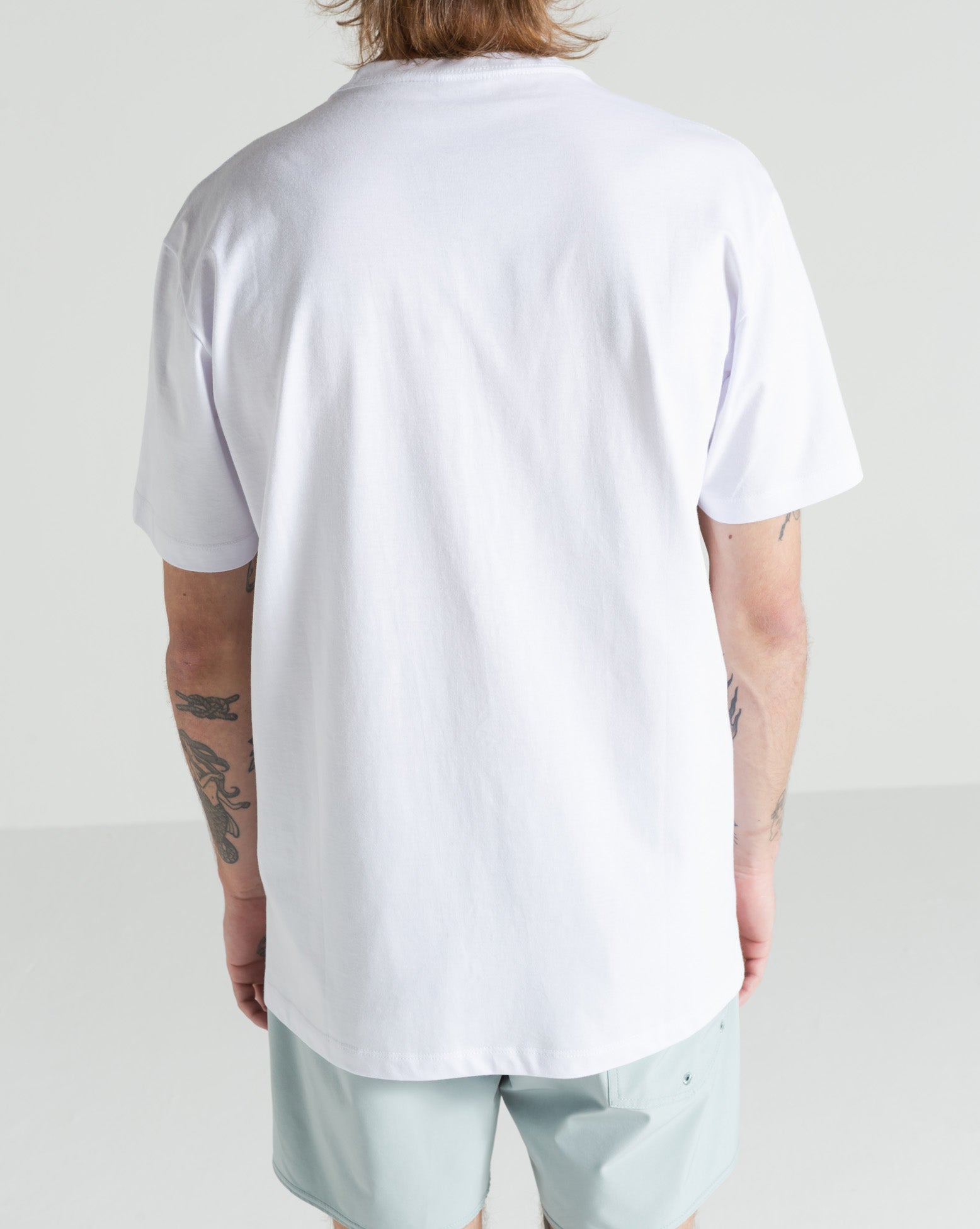 Camiseta Volcom Eye Can See Branca. Possui modelagem regular, silk frontal, assinatura Volcom na manga, etiqueta interna e viés contrastante.