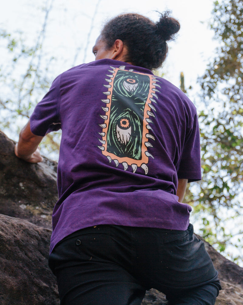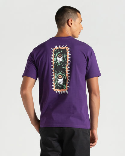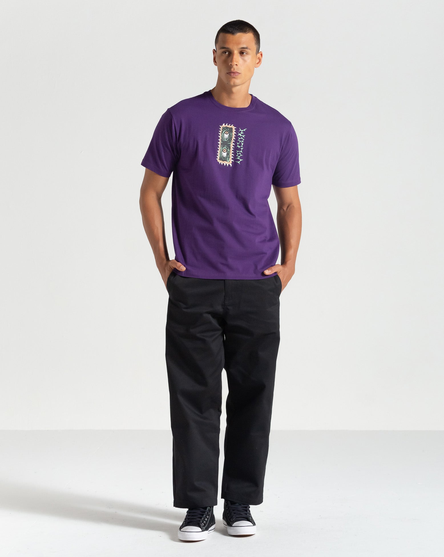 Camiseta Volcom Eye Rust. Possui modelagem regular, estampa em silk frontal e nas costas, assinatura Volcom na manga, etiqueta interna e viés contrastante.