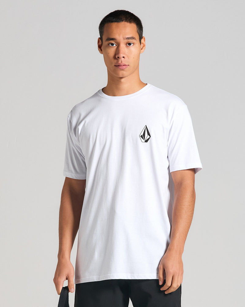 Camiseta Volcom Iconic. Possui modelagem regular, estampa Volcom Stone em silk frontal, assinatura Volcom na manga, etiqueta interna e viés contrastante.