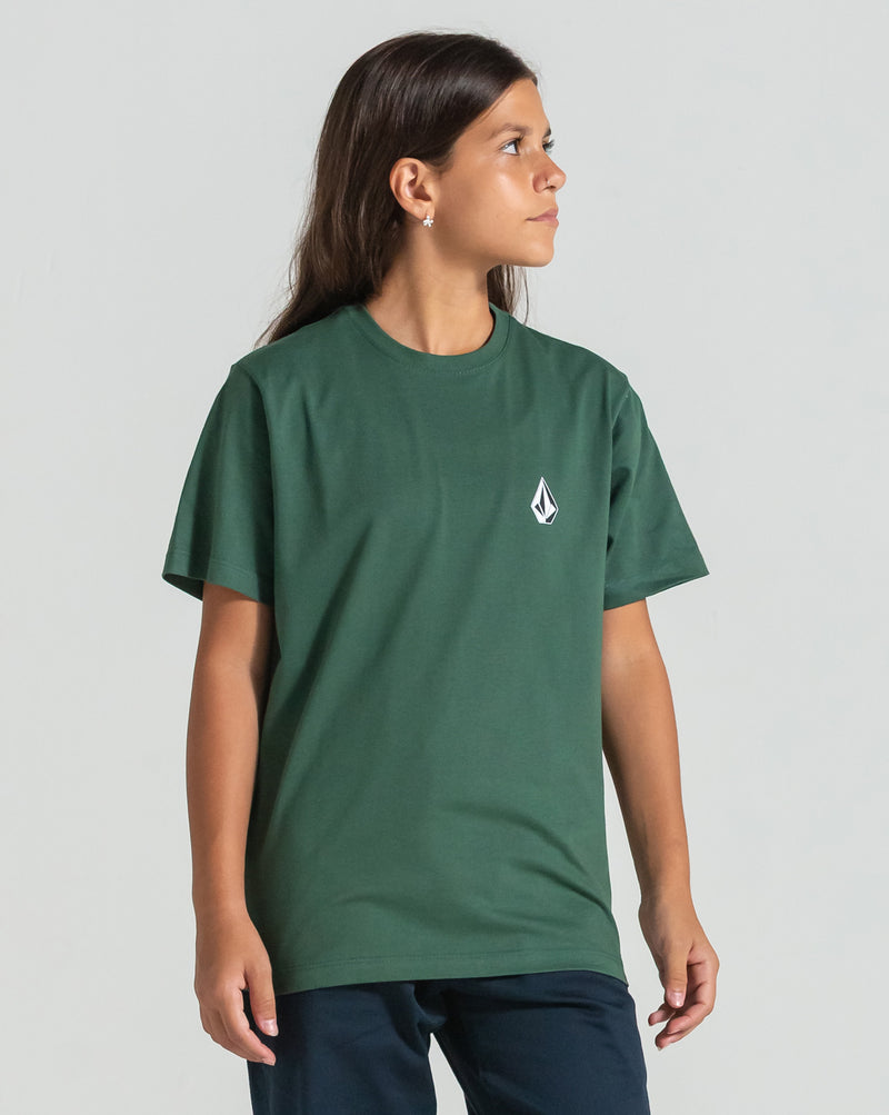 Camiseta Volcom Iconic Juvenil. Possui modelagem regular, estampa Volcom Stone em silk frontal, assinatura Volcom na manga, etiqueta interna e viés contrastante.