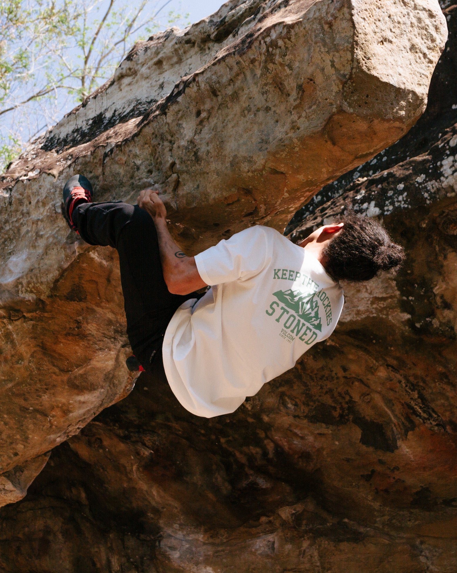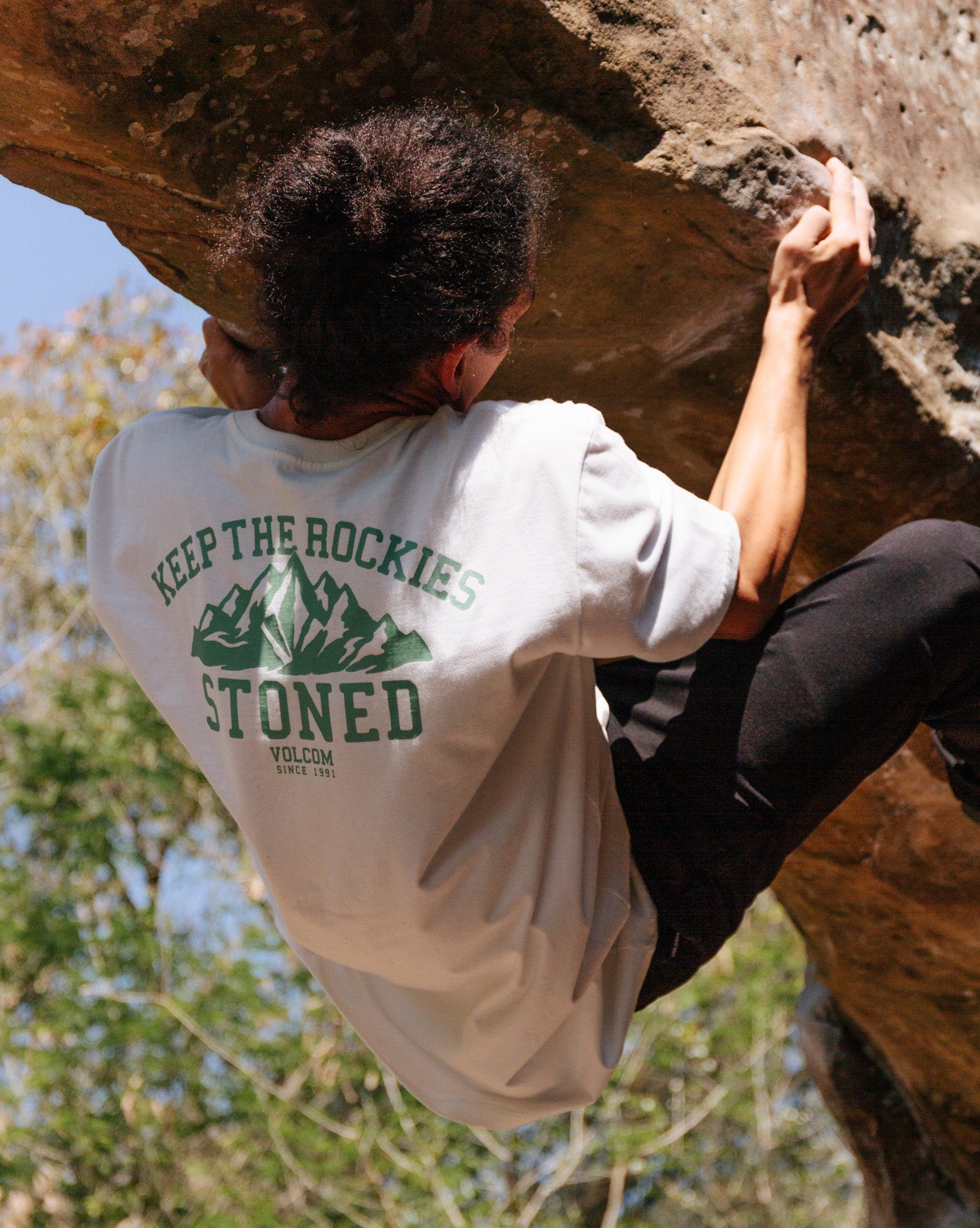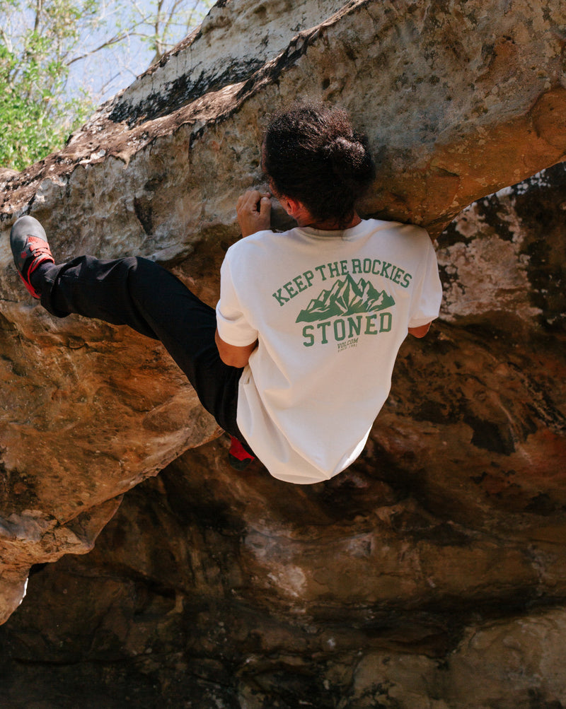 Camiseta Volcom Keep Rockies Stoned. Confeccionada em algodão 100% orgânico que tem como principal diferencial sua produção e cultivo que em comparação com o algodão convencional tem muito mais benefícios ao meio ambiente.