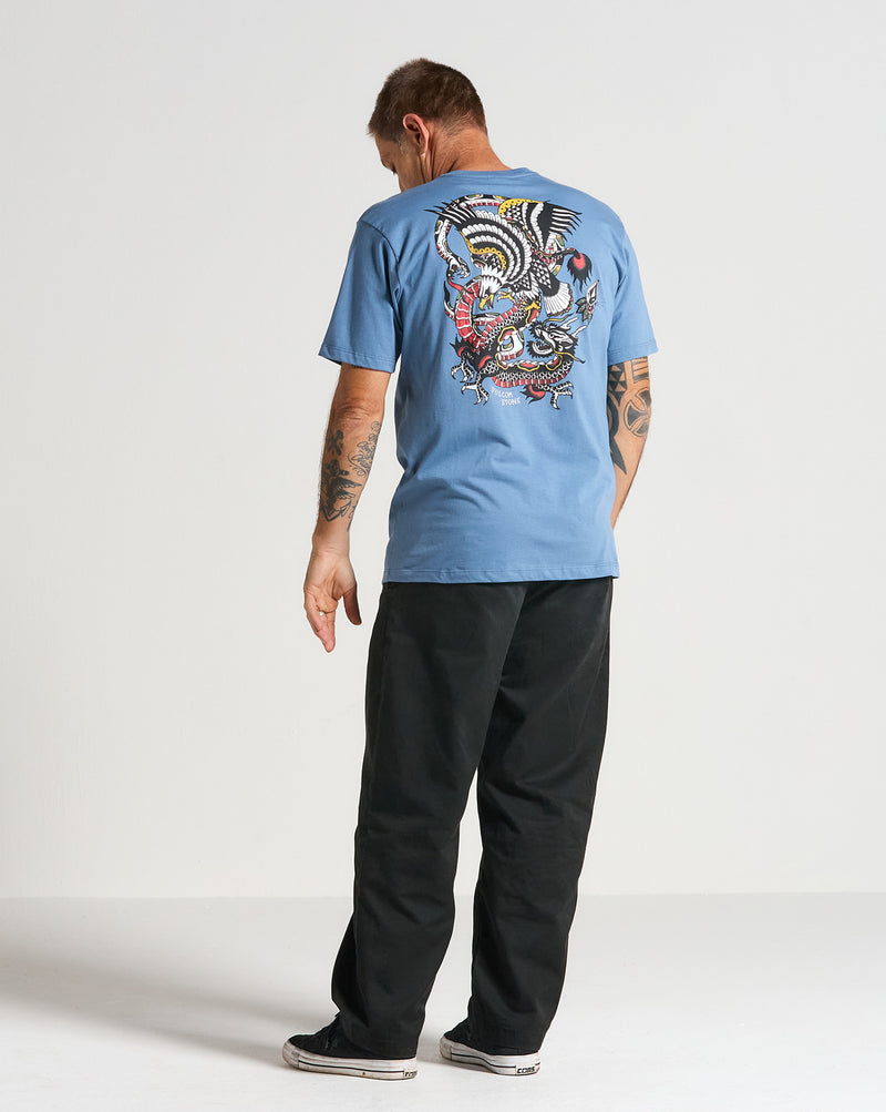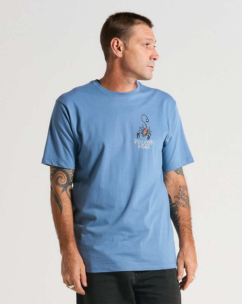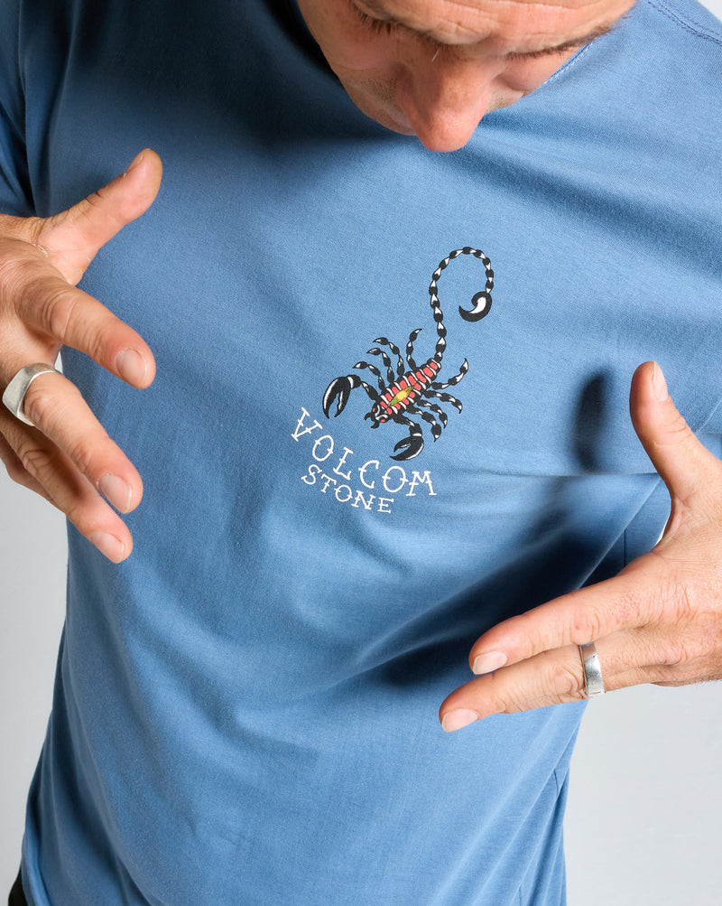Camiseta Volcom Lintel Classic. Possui modelagem regular, estampa em silk frontal e nas costas, assinatura Volcom na manga, etiqueta interna e viés contrastante.