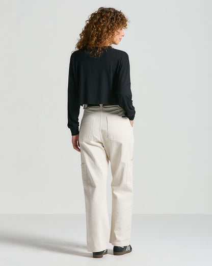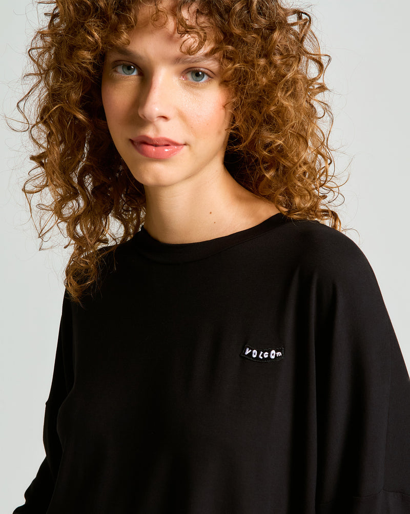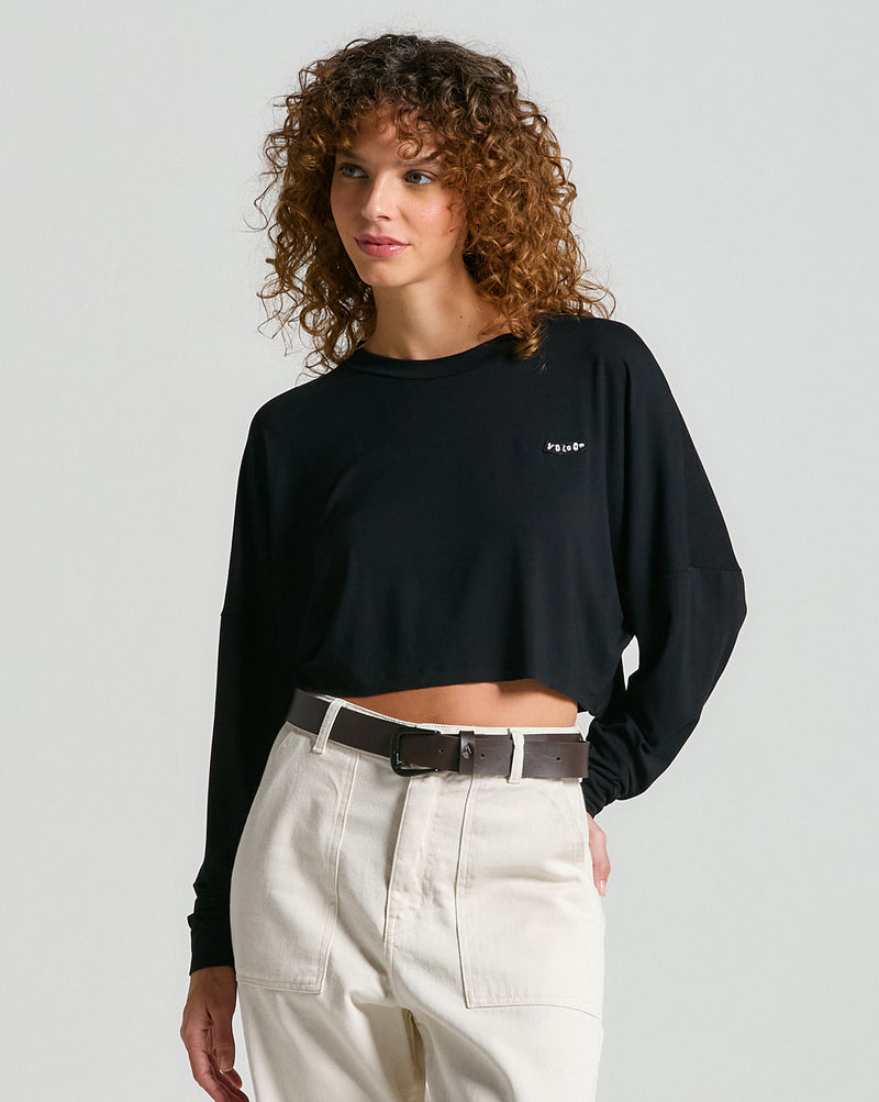 Camiseta Volcom Manga Longa Pistol. Possui modelagem cropped relaxed e bordado Volcom Pistol frontal.